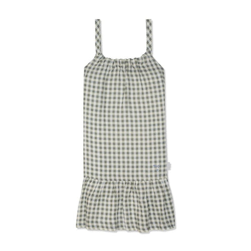 Kids Blue Gingham Linen Kid Dress - Natural/Faded Denim