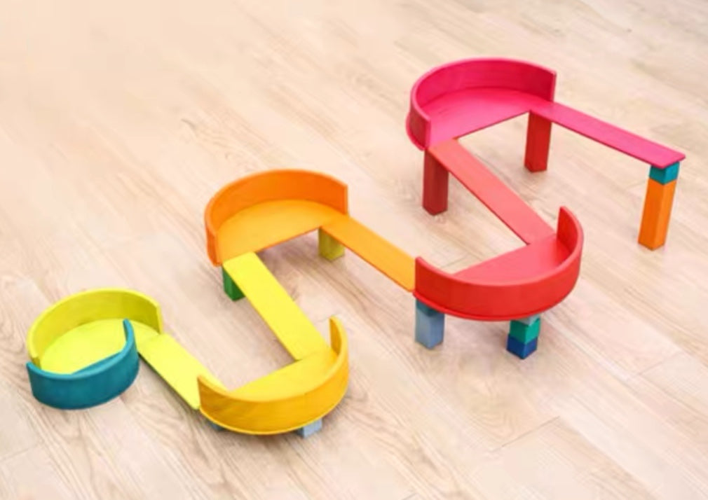 These large stepped stacking blocks are natural, eco-friendly, non-toxic wooden toys suitable for any age, from toddlers to adults. These blocks' elemental cubic and cuboid forms inspire children to build simple walls, foundations, fences, stalls, houses, towers, and castles. Children develop fine motor and spatial thinking skills by playing with these blocks.