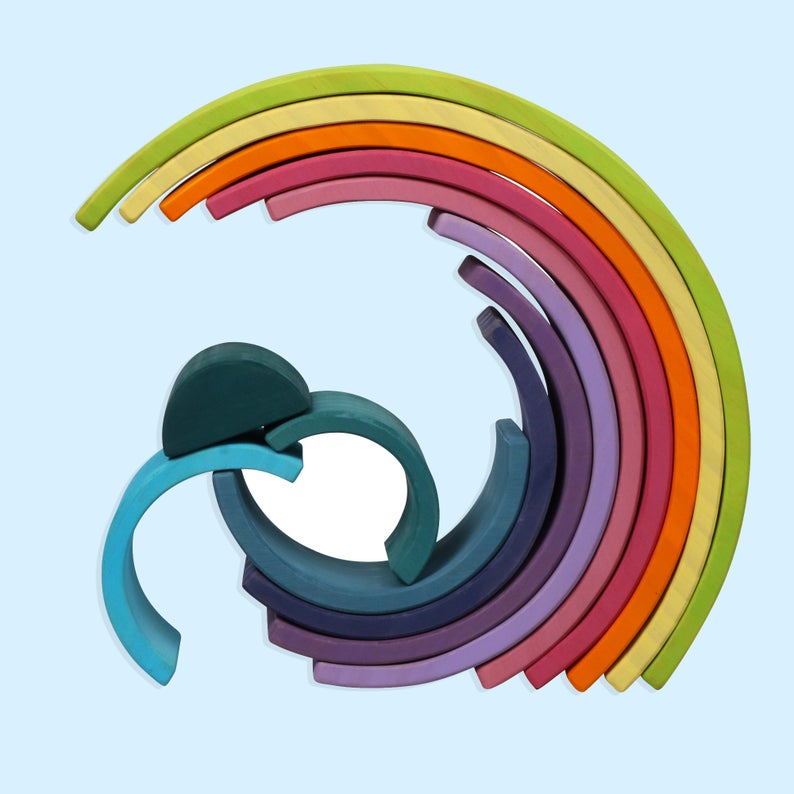 These rainbow stacking blocks are natural, eco-friendly, non-toxic wooden toys, suitable for any age from toddlers to adults