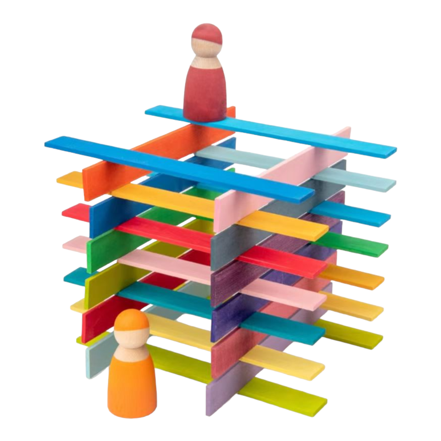 These rainbow-colored wooden Leonardo Building Sticks - Da Vinci's Bridge allow children to experience the brilliance of da Vinci's design and experience physics in a fun and colorful way! Older kids can challenge to build an arched bridge or a dome using only sticks and nothing else. Younger children will enjoy creating their buildings and structures with colorful sticks combined with other wooden blocks.