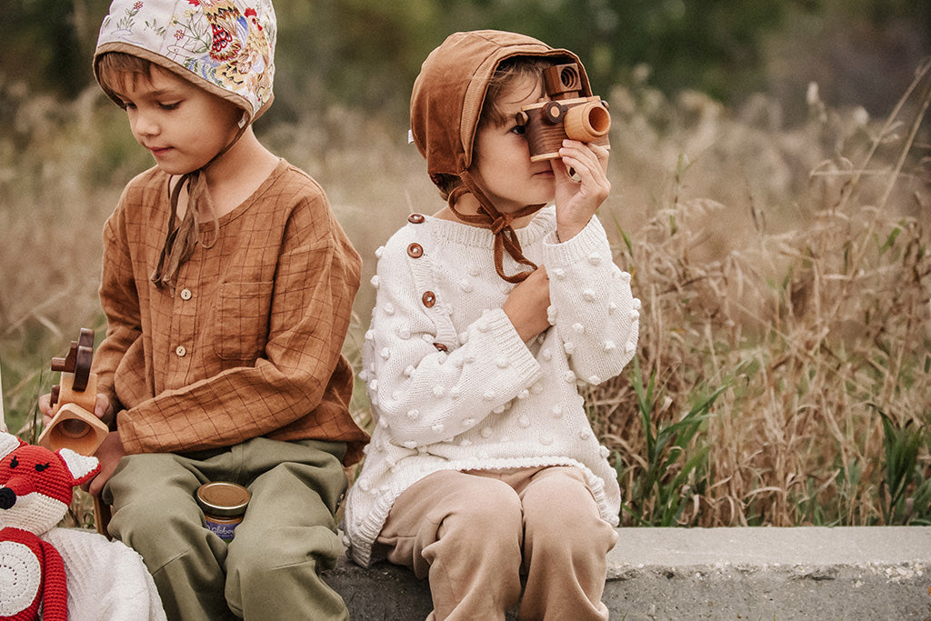 Capture creativity with the 35MM Wooden Toy Camera, crafted from solid beech and walnut for heirloom durability. Featuring a kaleidoscope lens and clickable shutter, it sparks imaginative play for kids and families. Made from non-toxic, eco-friendly materials, it’s a safer, sustainable alternative to plastic toys. Perfect for open-ended play and stylish nursery décor, this timeless keepsake toy doubles as interior decor.