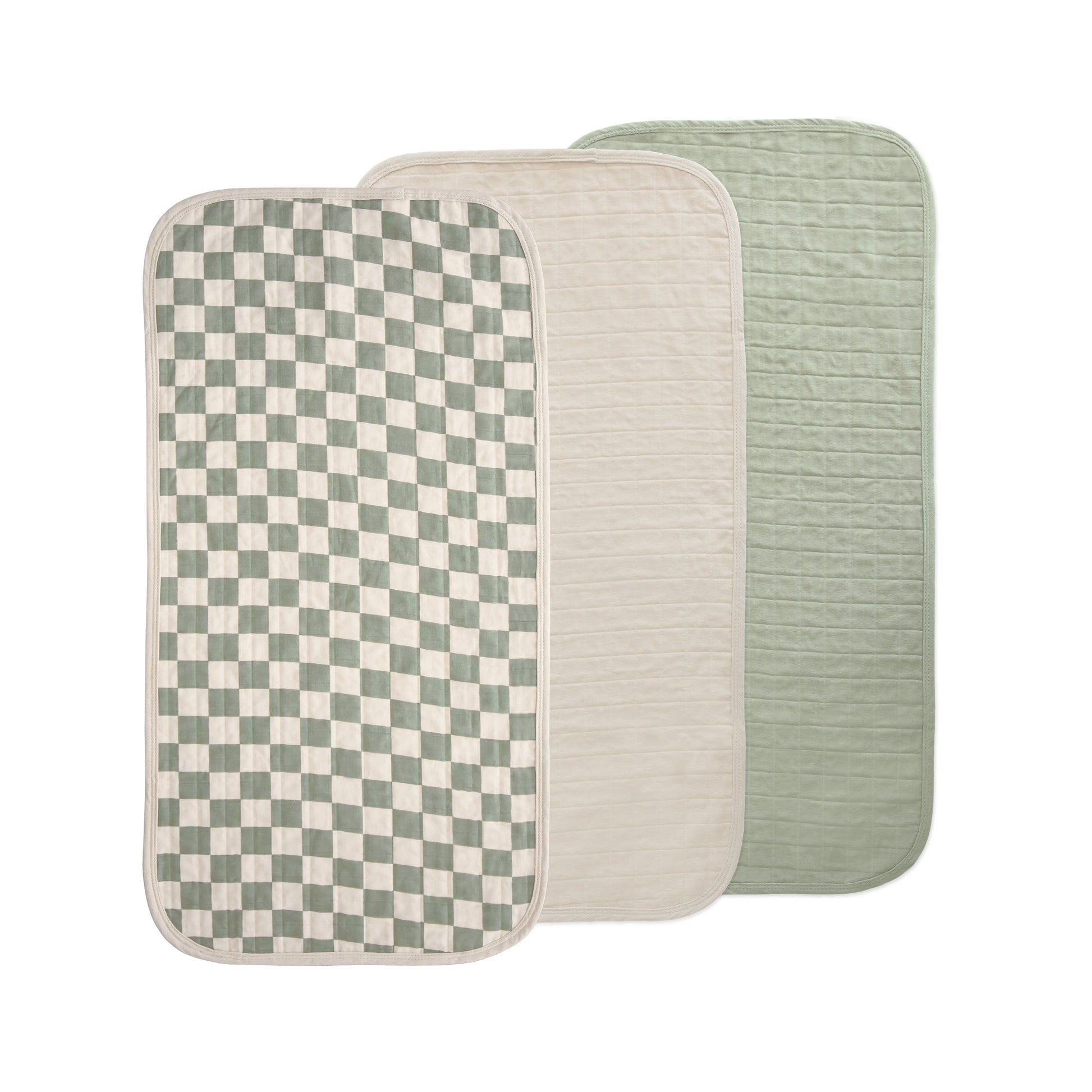 Help keep your baby’s space clean and add a layer of calming comfort to diaper changes with Mushie muslin changing pad liners. Crafted with 100% organic cotton on the top and a soft bamboo blend on the bottom. A water repellent layer helps prevent messes and prolongs time in between changing pad washes. Designed with busy parents in mind, our liners are machine washable, protect most standard size changing pads and easily fit into a diaper bag for on-the-go changes.