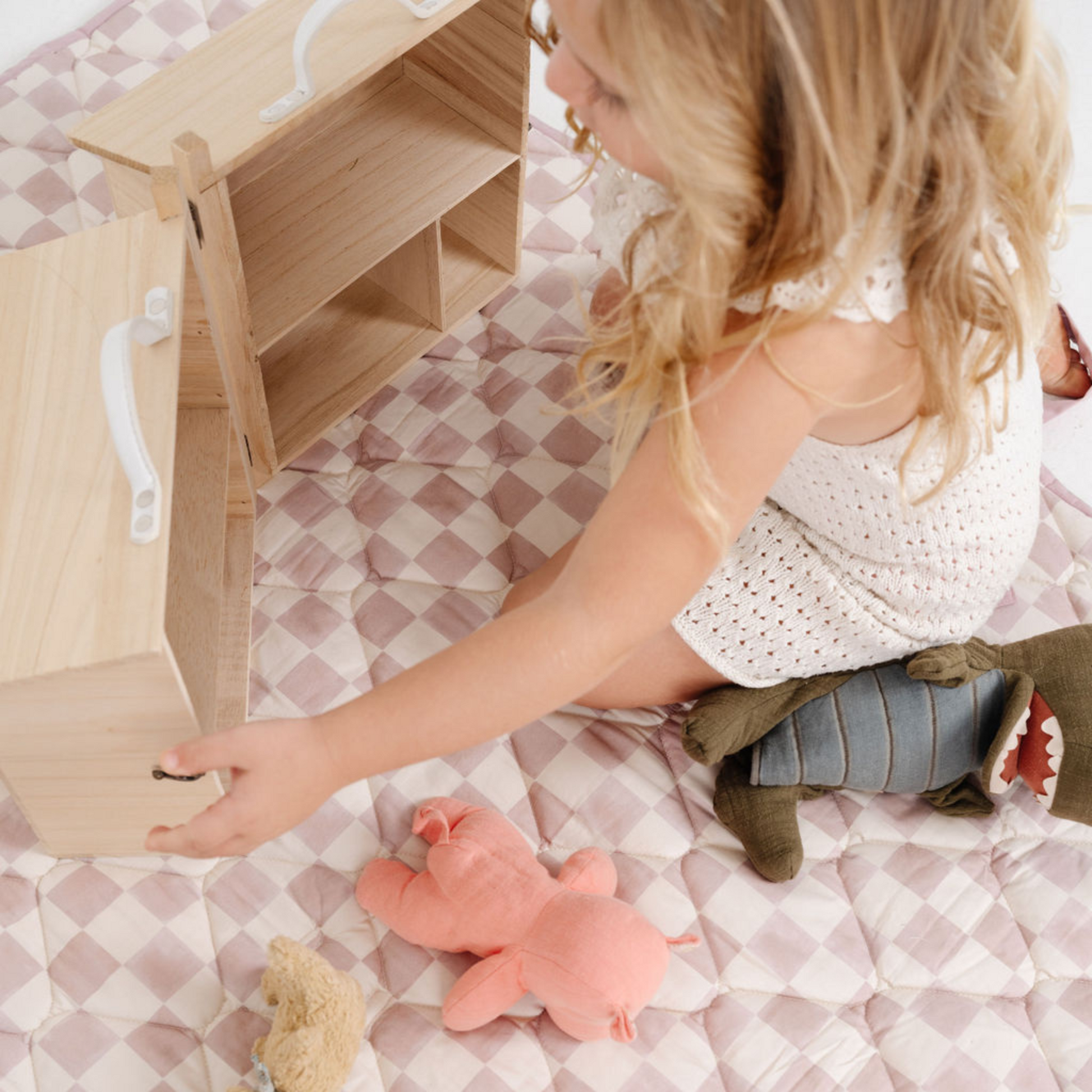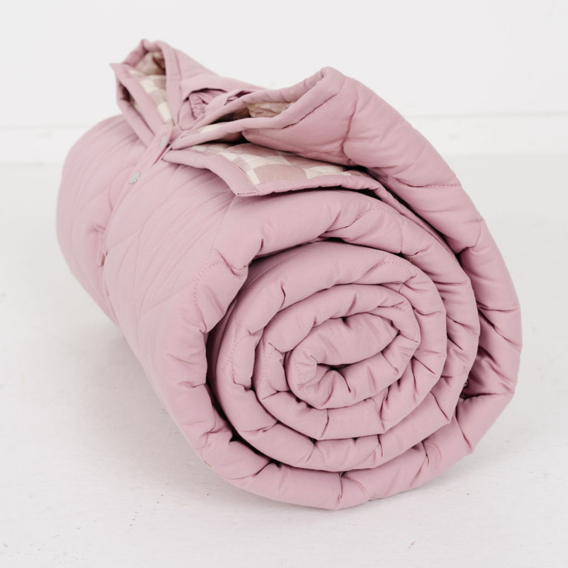 Ready for every family adventure, this roll-up picnic blanket features organic quilted water repellent cotton and a carry handle for comfort and convenience.