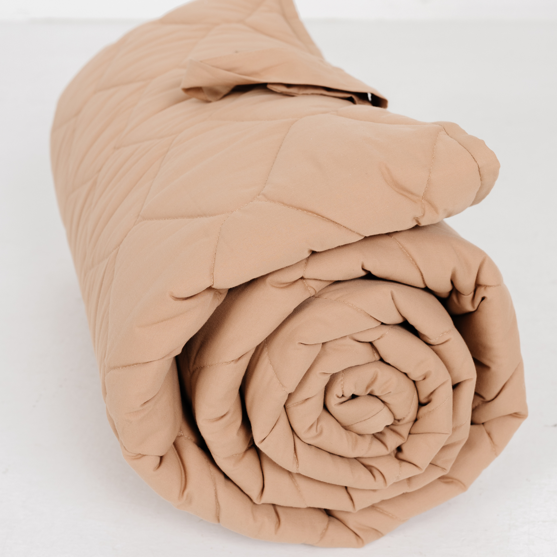 Ready for every family adventure, this roll-up picnic blanket features organic quilted water repellent cotton and a carry handle for comfort and convenience.
