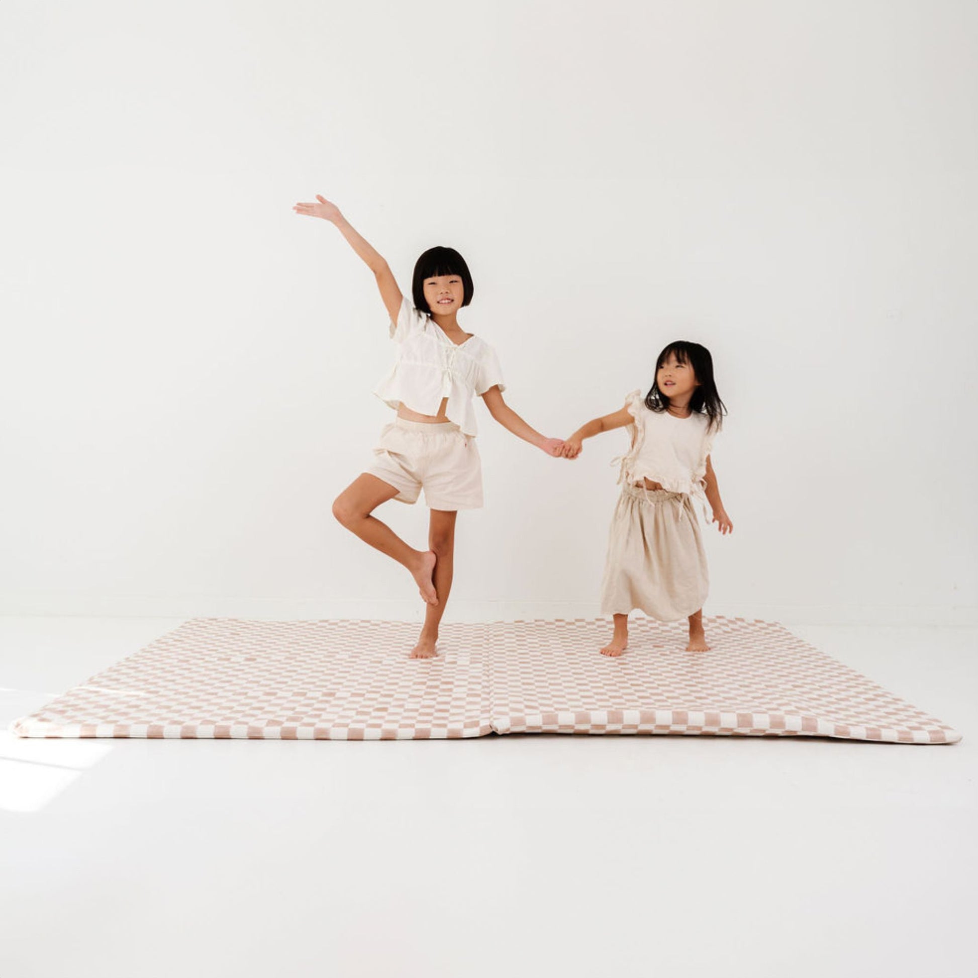 An ultra comfy, mess-proof play mat for tummy time and soft seating inside, outside, or wherever you go.