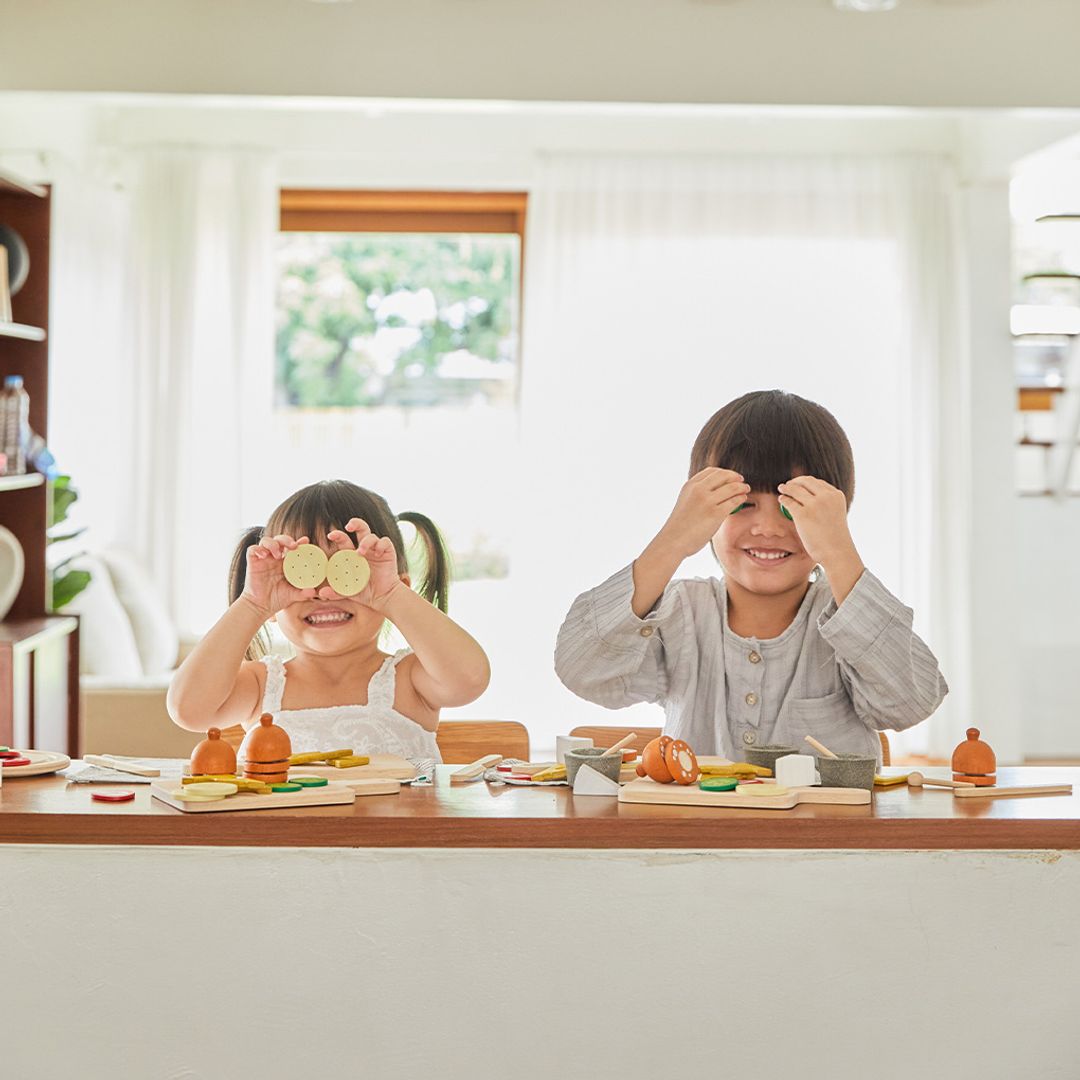 Everyone loves a charcuterie board. With this set, children can prepare a European-style appetizer that’s guaranteed to impress their guests. This set includes 2 pickled cucumbers, 2 strawberries, 2 crackers, 1 block of brie cheese, 2 slices of gouda cheese, 1 sliceable roll of salami, 1 knife, 1 sauce cup, 1 spoon, and 1 cutting board. Expand upon the meal with other PlanToys pretend foods and kitchenware.