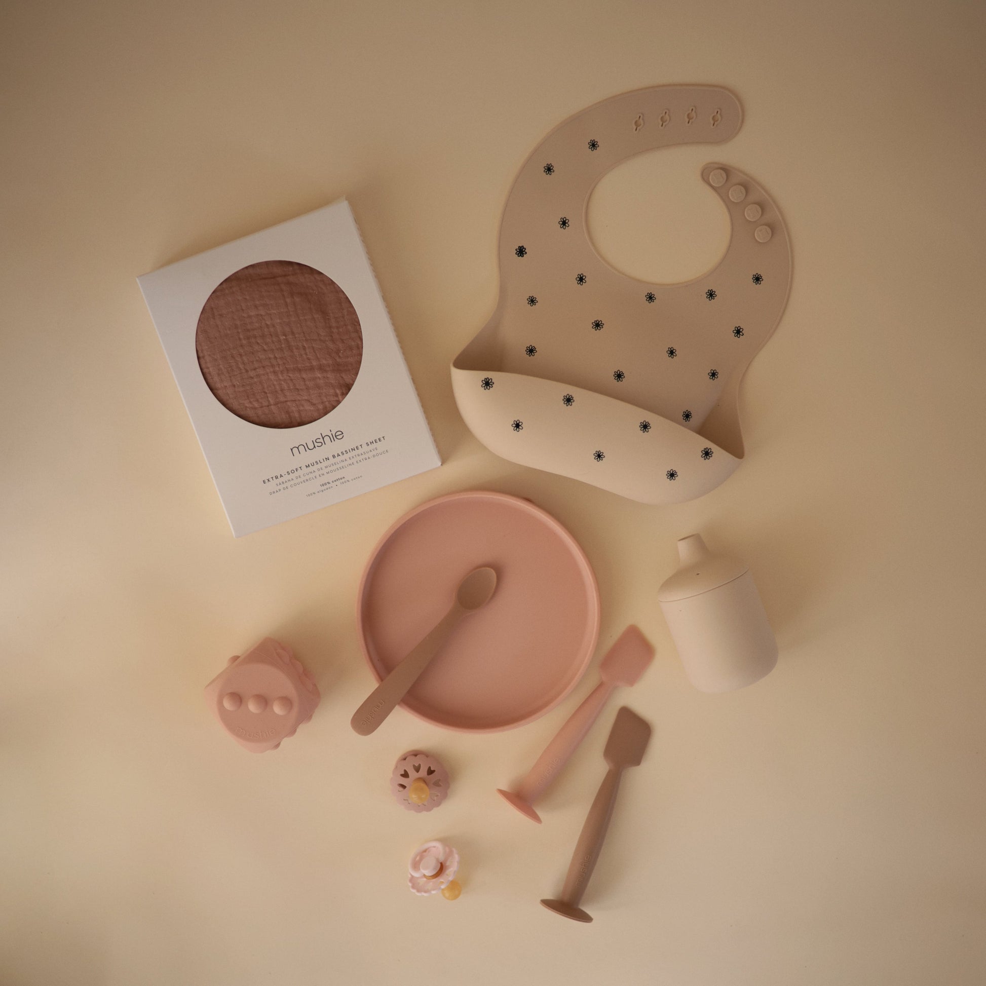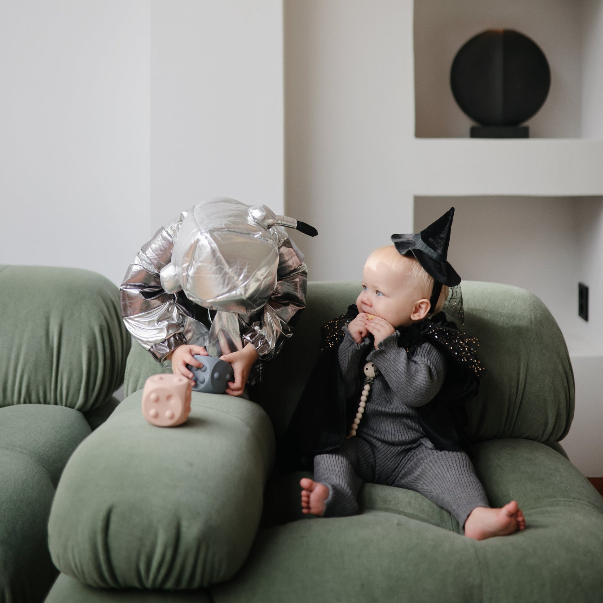 Combine learning and play with the mushie Dice Press Toy. Made with 100% food grade silicone, the pair of dice features poppable dots on each face, encouraging fine motor skill development while also providing a tool for teaching counting and simple arithmetic. A sensory toy and STEM toy all in one, this set of two was developed to keep little hands and minds busy.