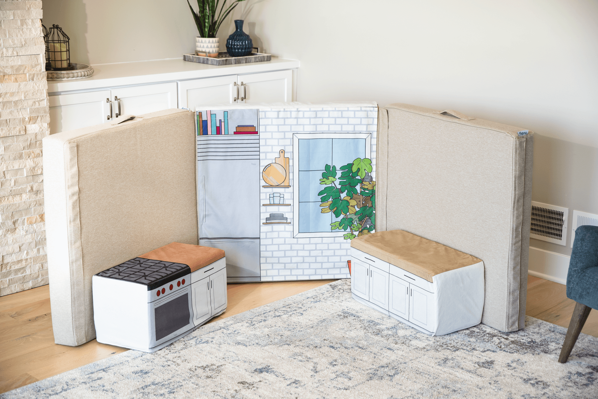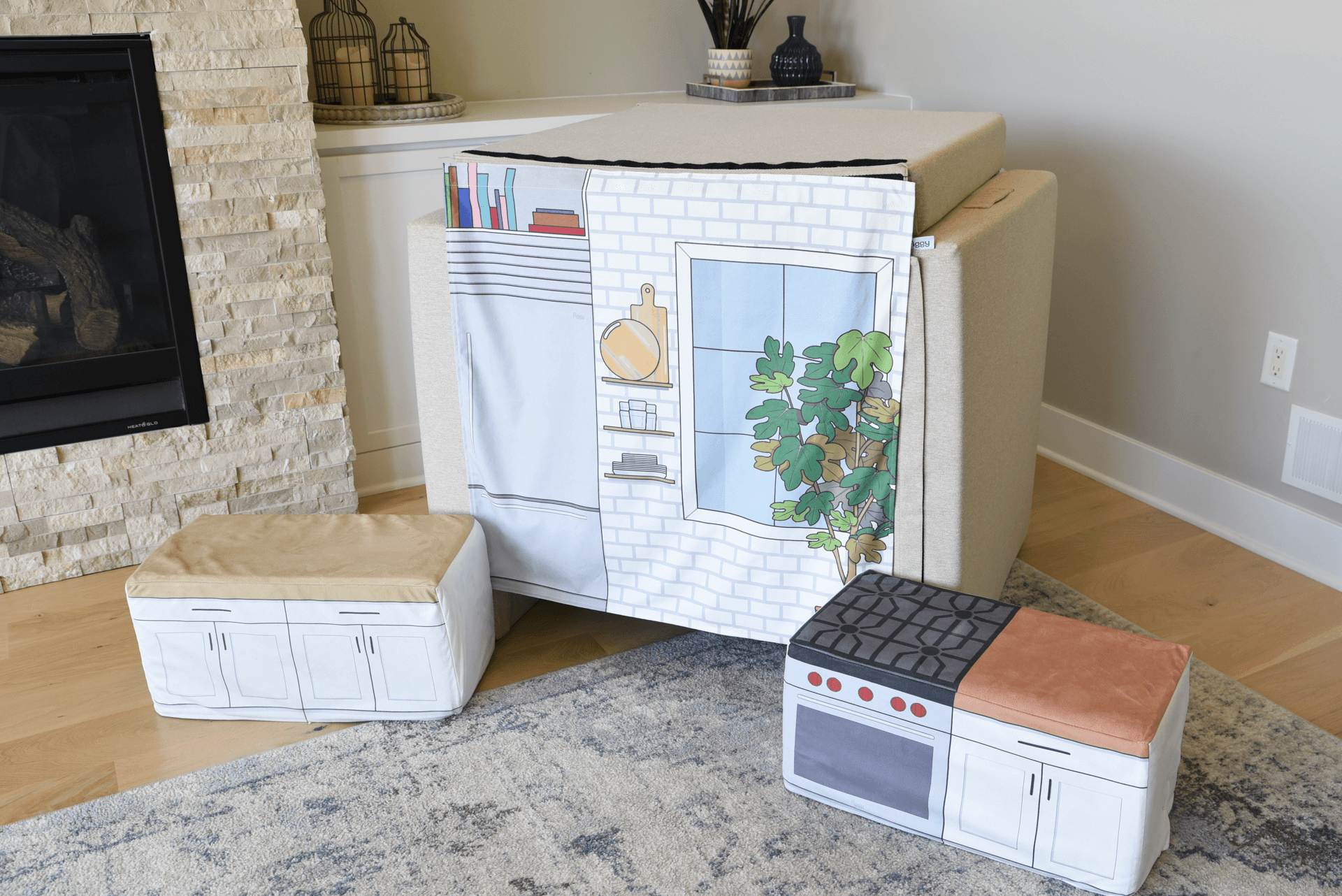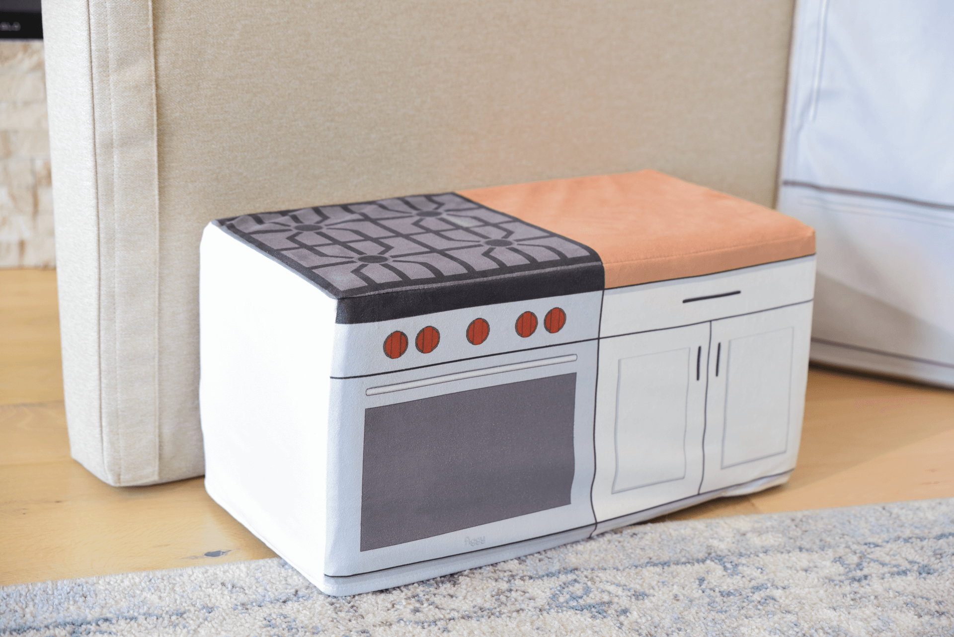 Transform your Figgy into the ultimate imaginary play scene with Figgy Play Panels! Create an imaginative kitchen in under a minute. Perfect for moms who want to avoid a room full of plastic furniture and equally perfect for aspiring chefs ready to master their omelet-flipping skills. Our play panels use the built-in Velcro attachment system to easily attach to any Figgy base cushion. Prefer more flexibility? An attachment panel is included so you can drape the play panel over the side of any cushion. Plus, two additional rectangle covers are included to turn your Figgy into a stove and countertop.