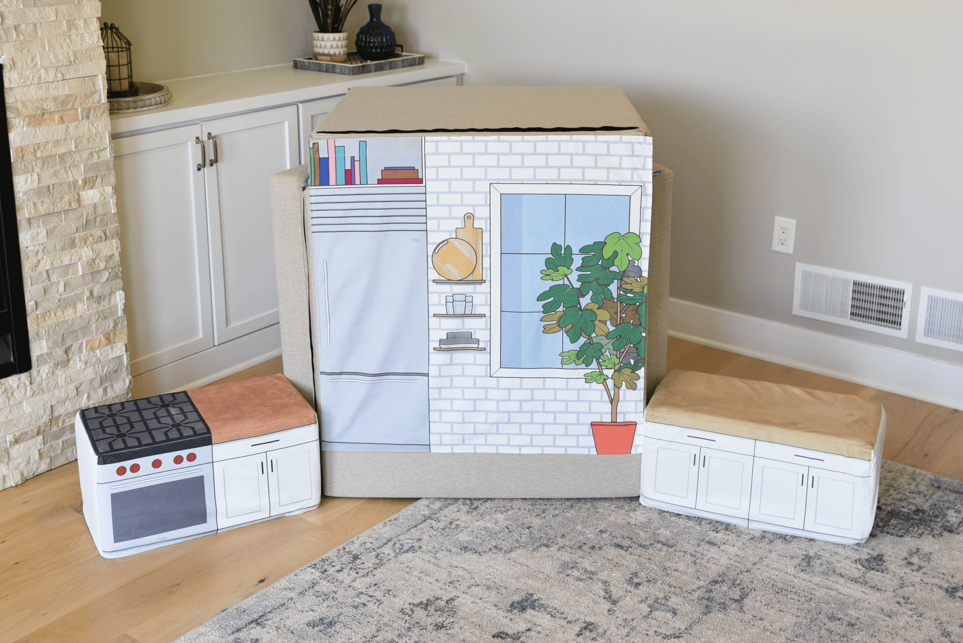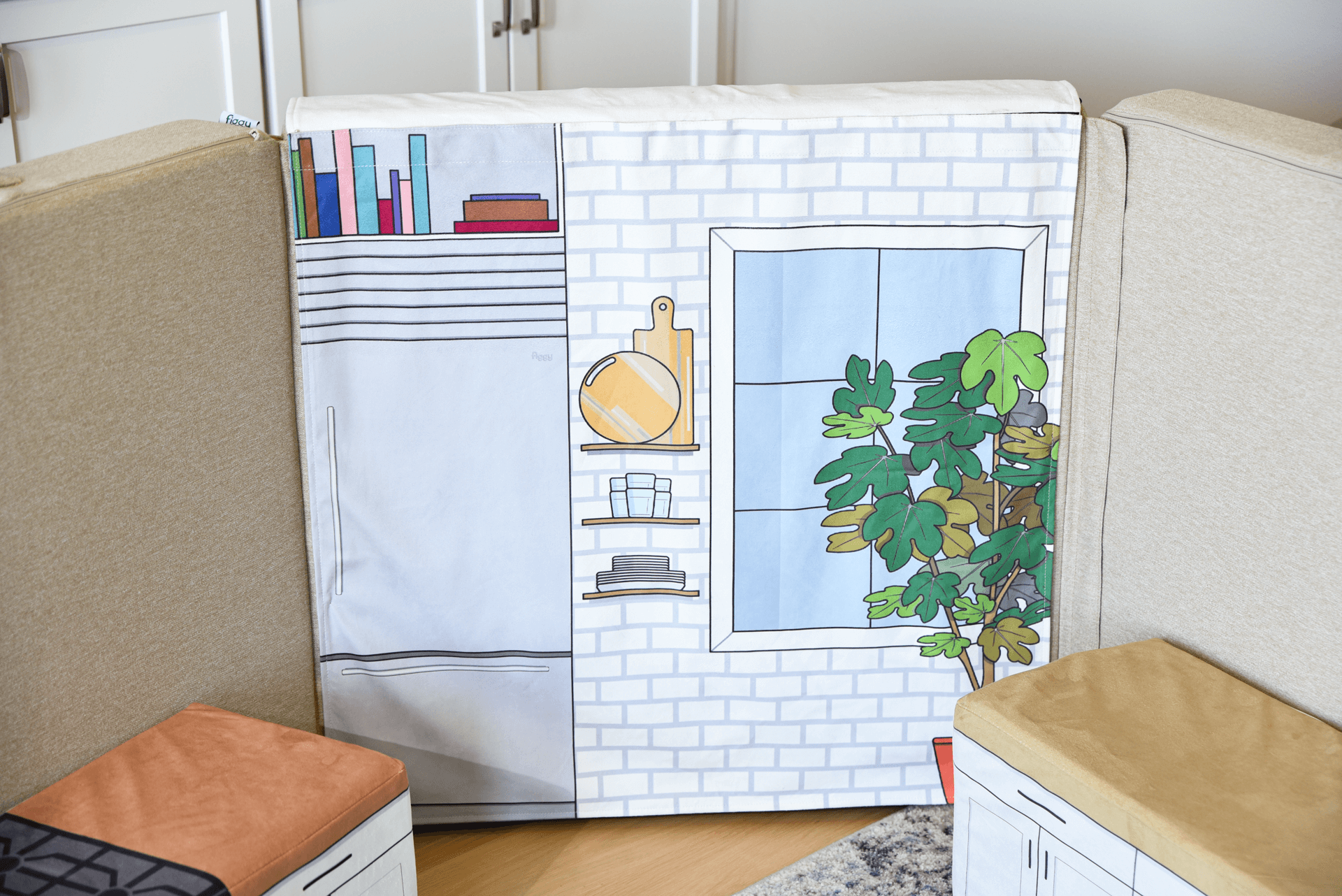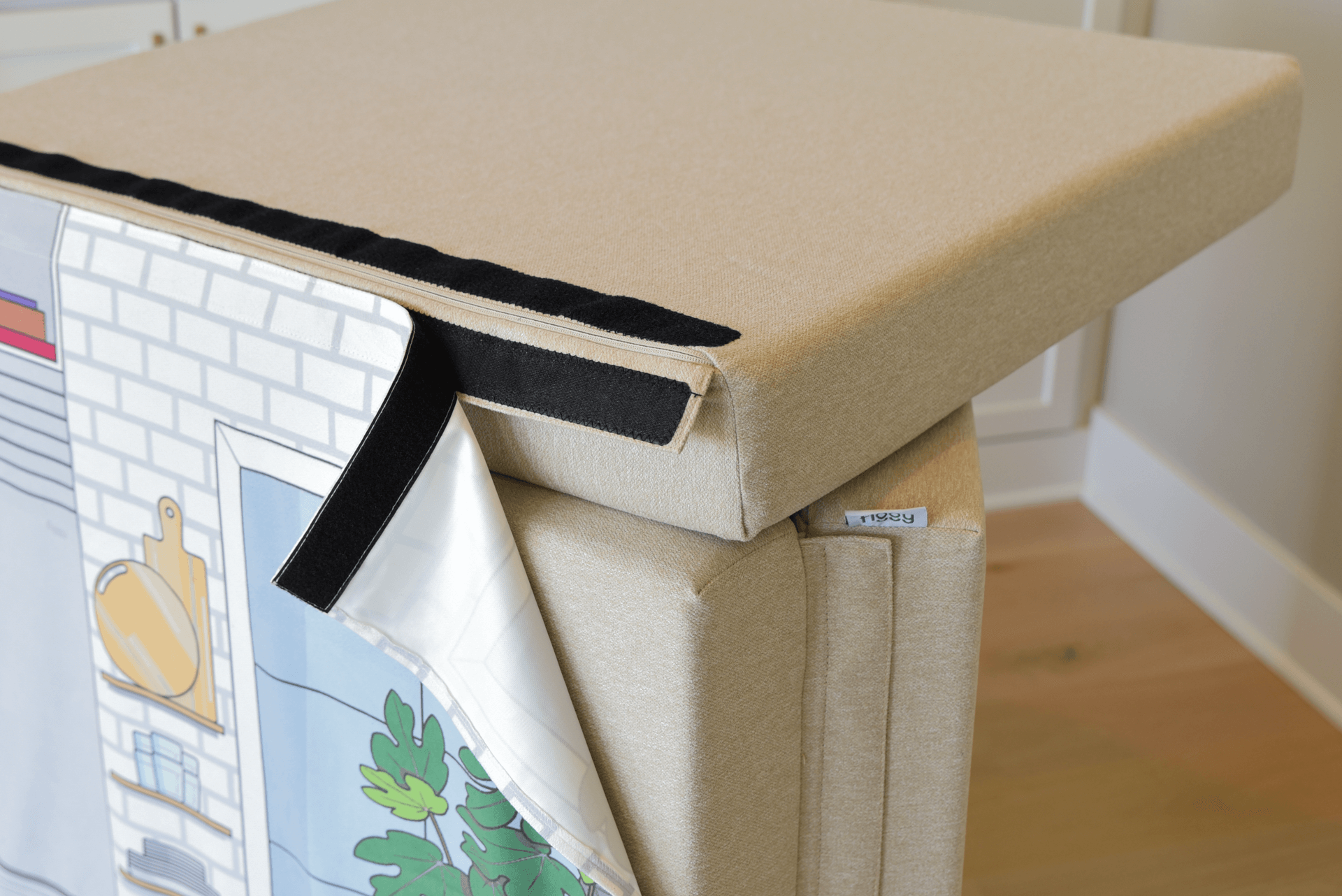 Transform your Figgy into the ultimate imaginary play scene with Figgy Play Panels! Create an imaginative kitchen in under a minute. Perfect for moms who want to avoid a room full of plastic furniture and equally perfect for aspiring chefs ready to master their omelet-flipping skills. Our play panels use the built-in Velcro attachment system to easily attach to any Figgy base cushion. Prefer more flexibility? An attachment panel is included so you can drape the play panel over the side of any cushion. Plus, two additional rectangle covers are included to turn your Figgy into a stove and countertop.