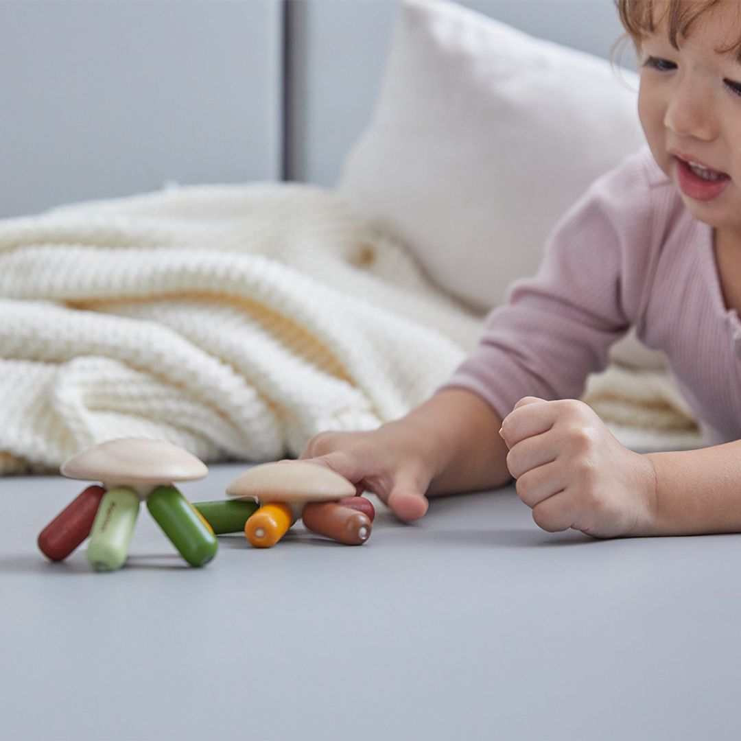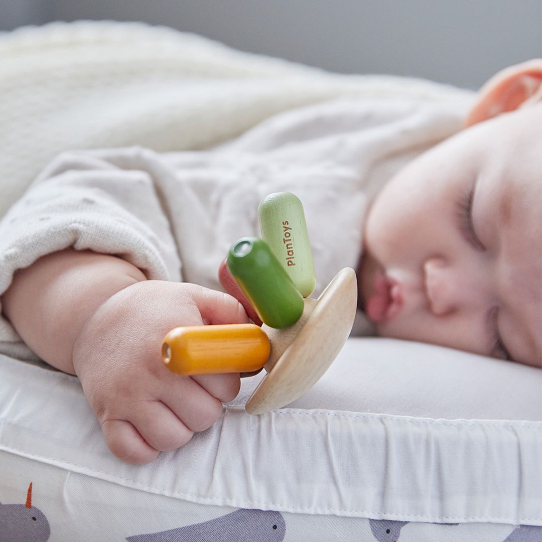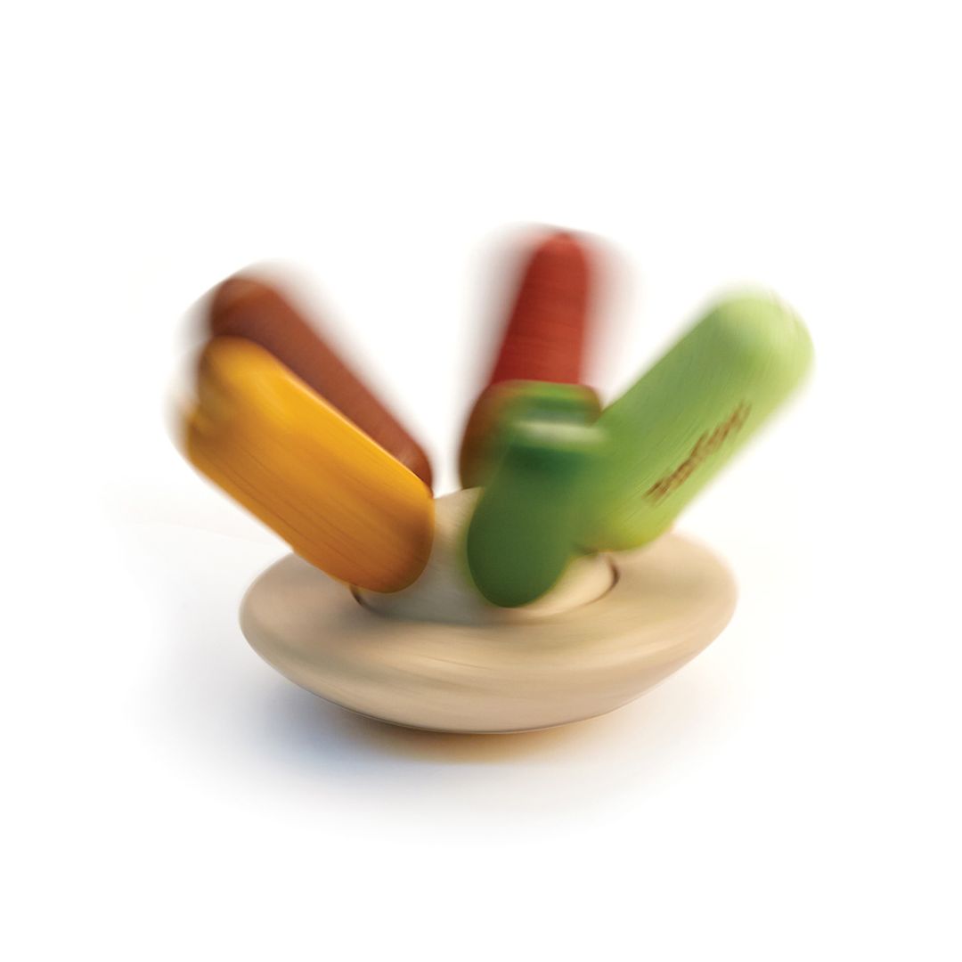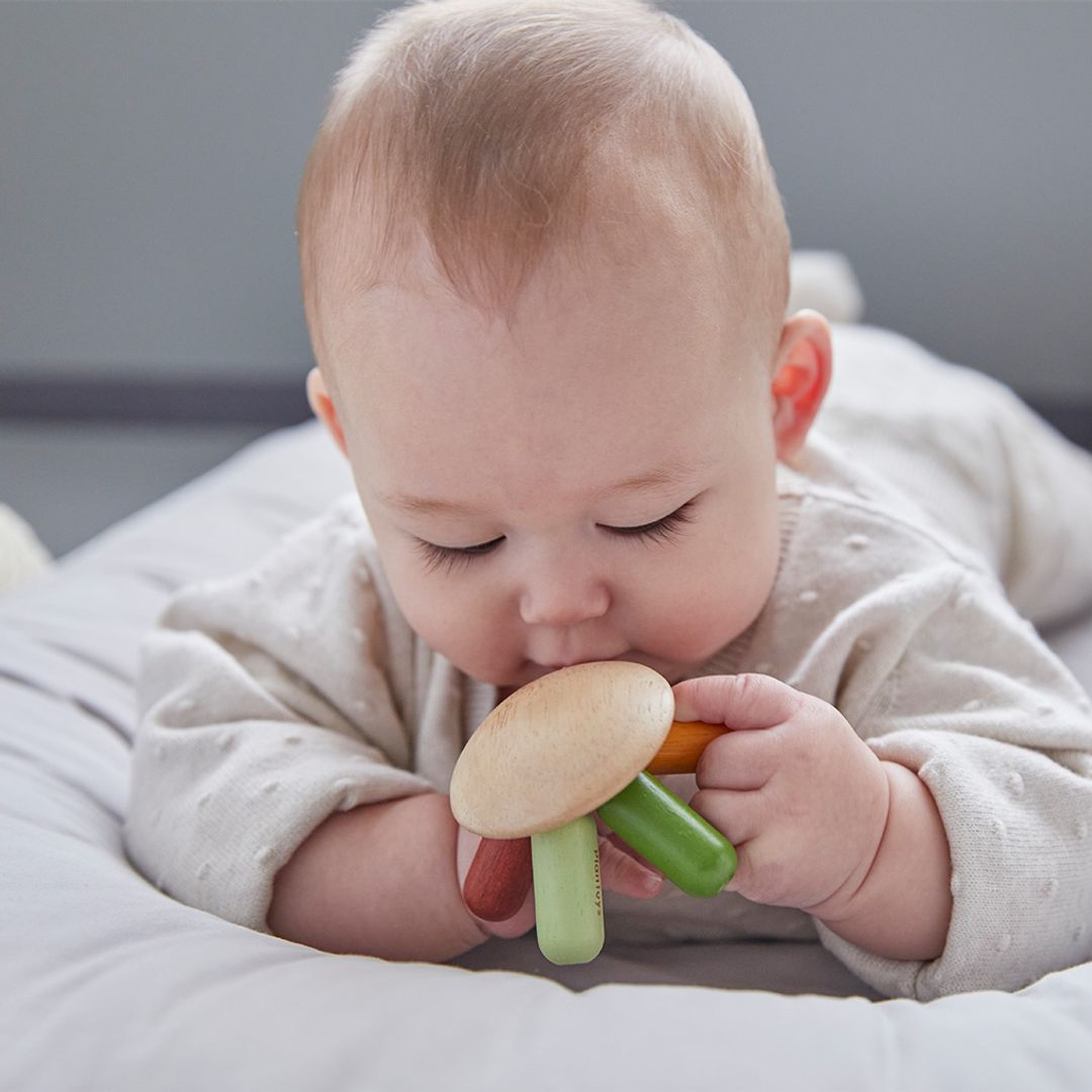 The PlanToys Flexi Jellyfish in the modern rustic colorway is a palm-clutching toy designed to fit in a child’s hand. The fun legs wiggle as they are pinched and pressed. It stimulates babies to practice grasping objects to develop capable palms and fingers. This toy will capture babies’ attention and provide a sensory and tactile experience.