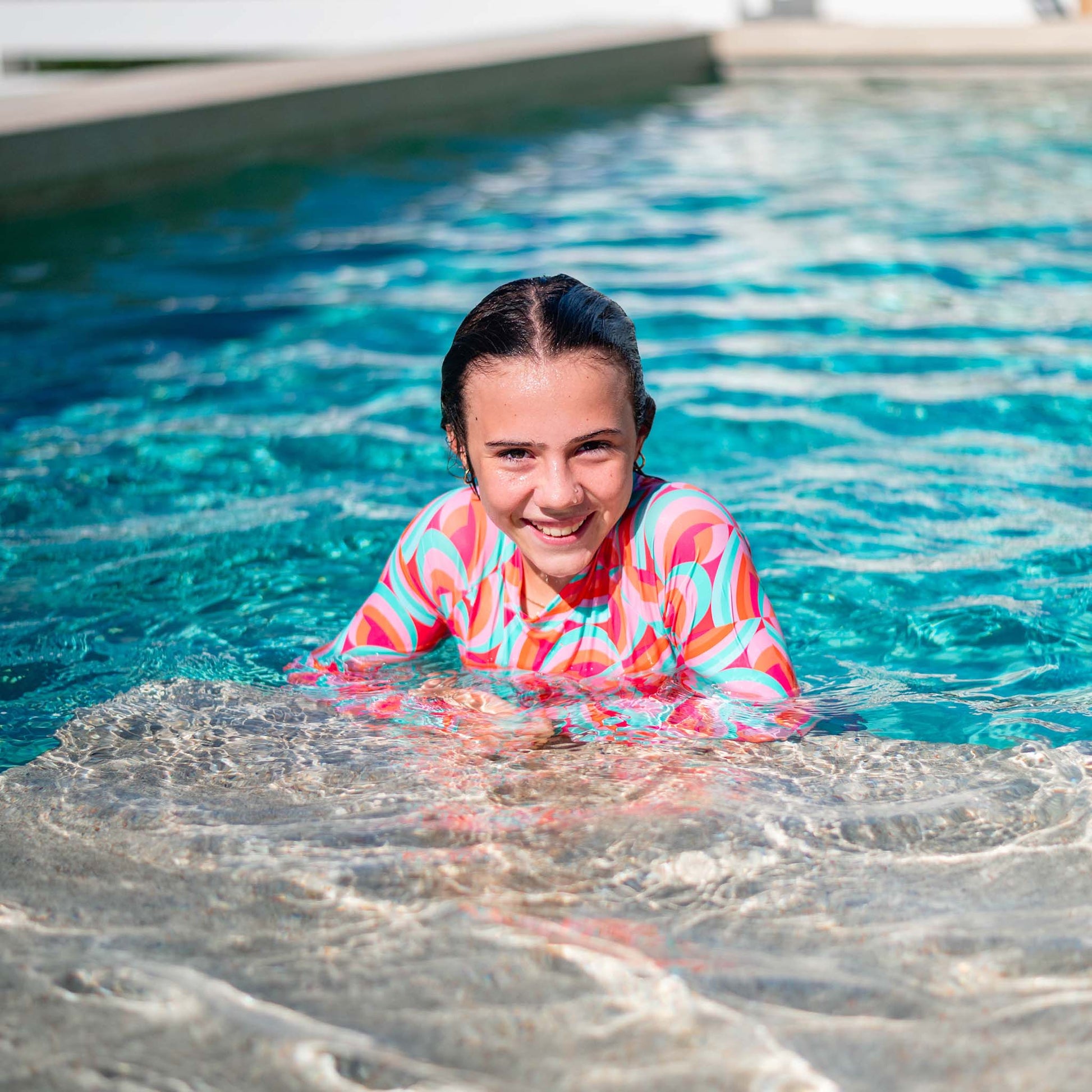 Hit the beach in our Geo Melon Sustainable Long Sleeve Surf Suit. It's funky and fruity, just like your fashionista. Keep her covered in UPF50+ protection. Simply slip it on, zip her up, and sea where the day takes her!