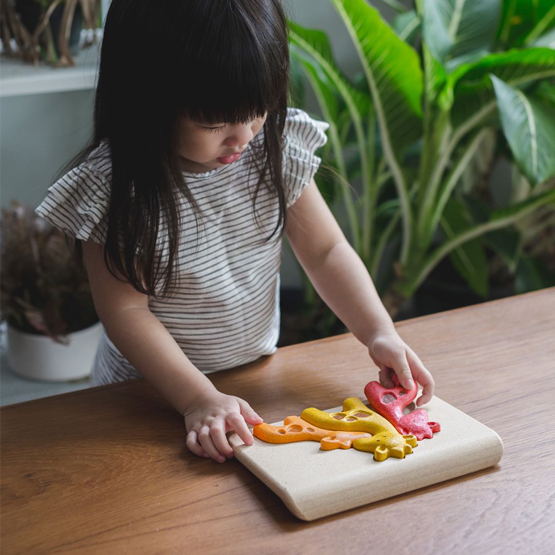Have fun with this Giraffe Puzzle! Kids can play it as a puzzle which helps develop problem solving and fine motor skills. Moreover, they can create a story from the figures to encourage imaginative thinking.