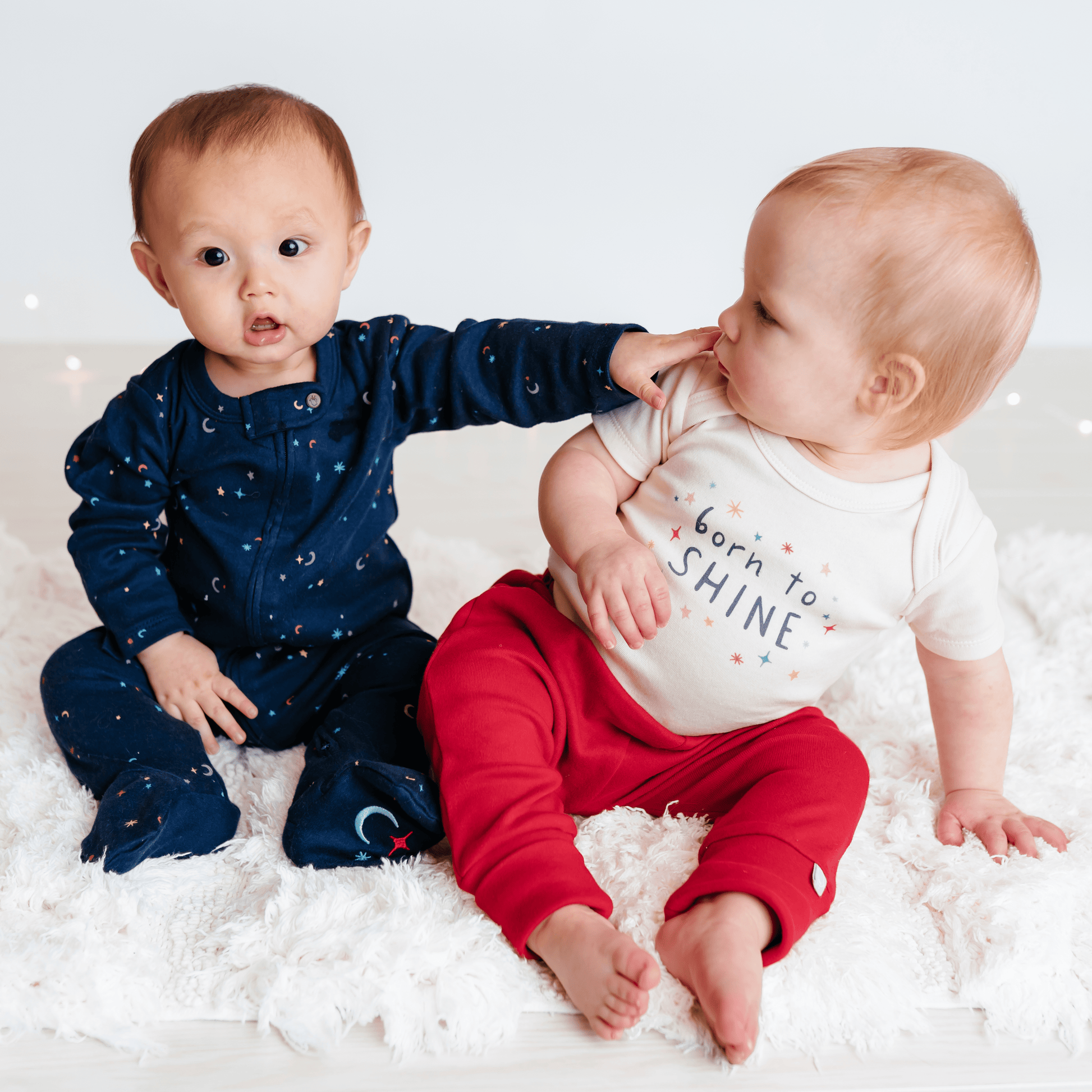 Simple and comfortable is best, especially for babies. Our adorable bodysuit is perfect for all sizes and activity levels, from your little one's first day in the world to their first birthday celebration. Made from buttery-soft organic cotton, it features easy-snap fasteners for quick access when changing or bathing.
