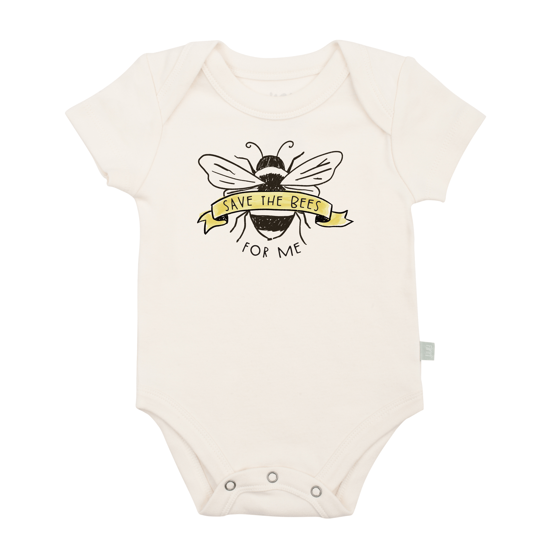 Your little one will create a buzz in this adorable new bodysuit! It features our "Save the Bees For Me" crest design. And, made from buttery-soft organic cotton, it also includes easy-snap fasteners for quick access when changing or bathing.