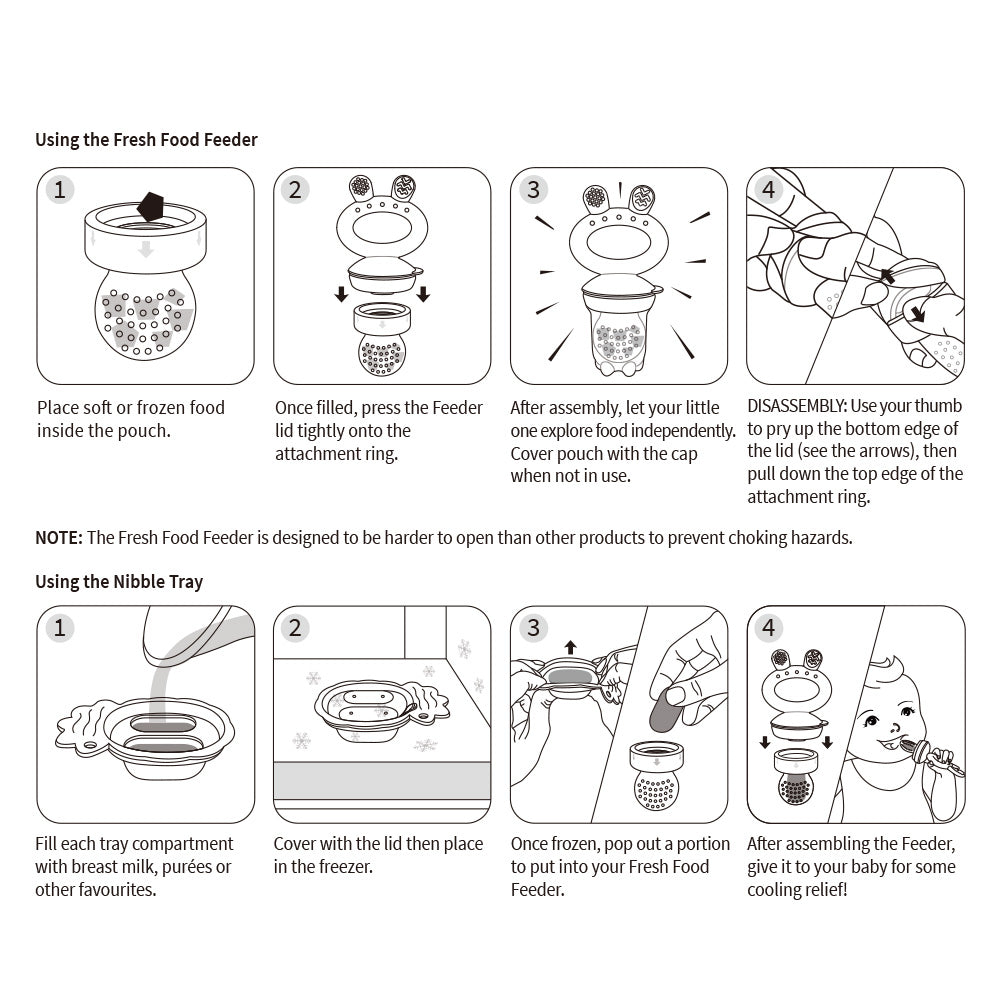 - Freeze breast milk or other favourites in the Nibble Tray to soothe tender gums.