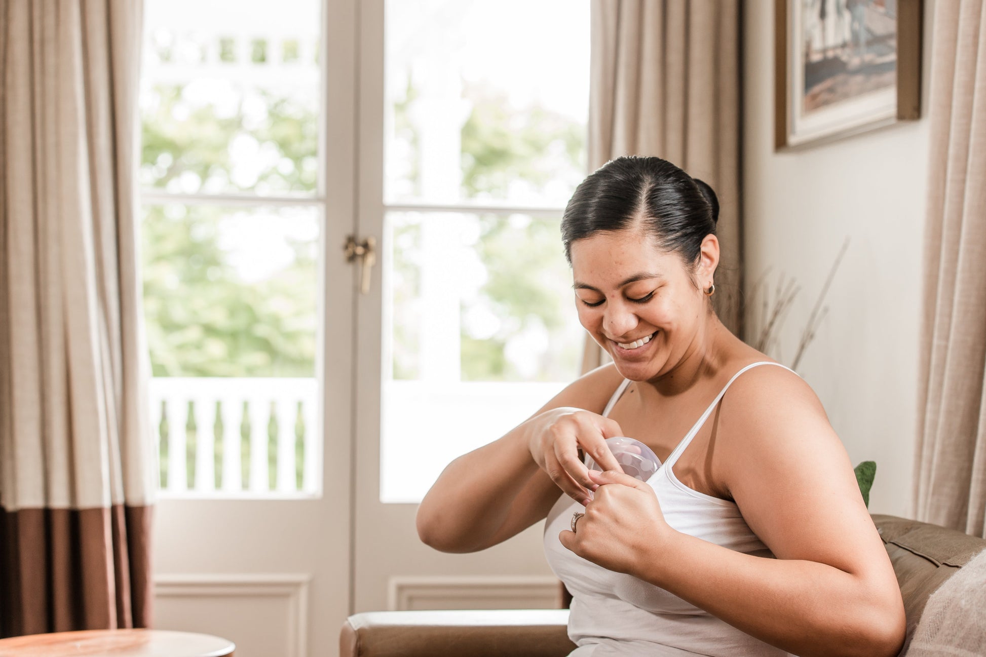 Press to your breast and release to create gentle suction and begin collecting let-down.