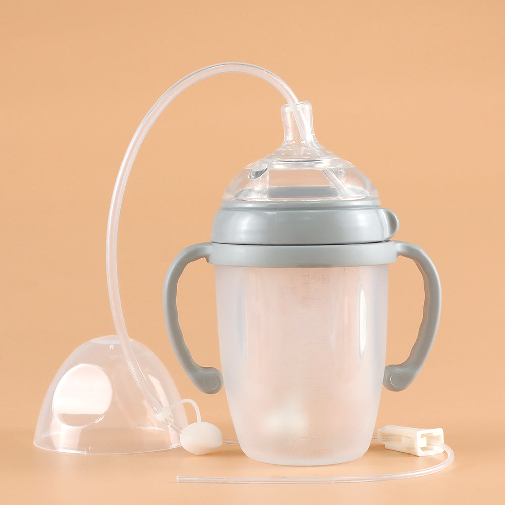 - Baby bottle made of food grade silicone with great anti-impact performance.
