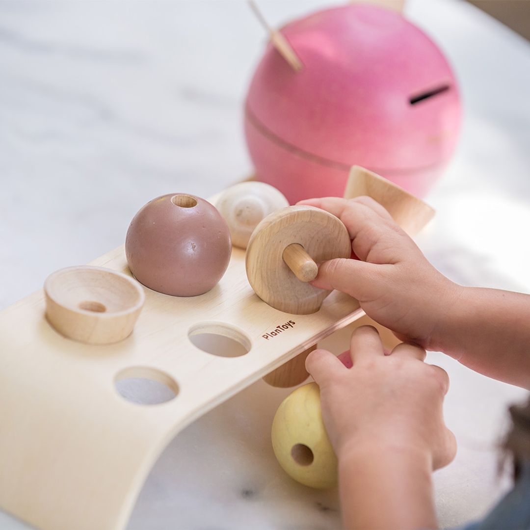 Create your own ice cream combo with the Ice Cream Set! The set includes: 3 different ice cream scoops, 1 topping, 2 cones, and 1 scooper. This toy helps enhance fine motor skills and hand-eye coordination.