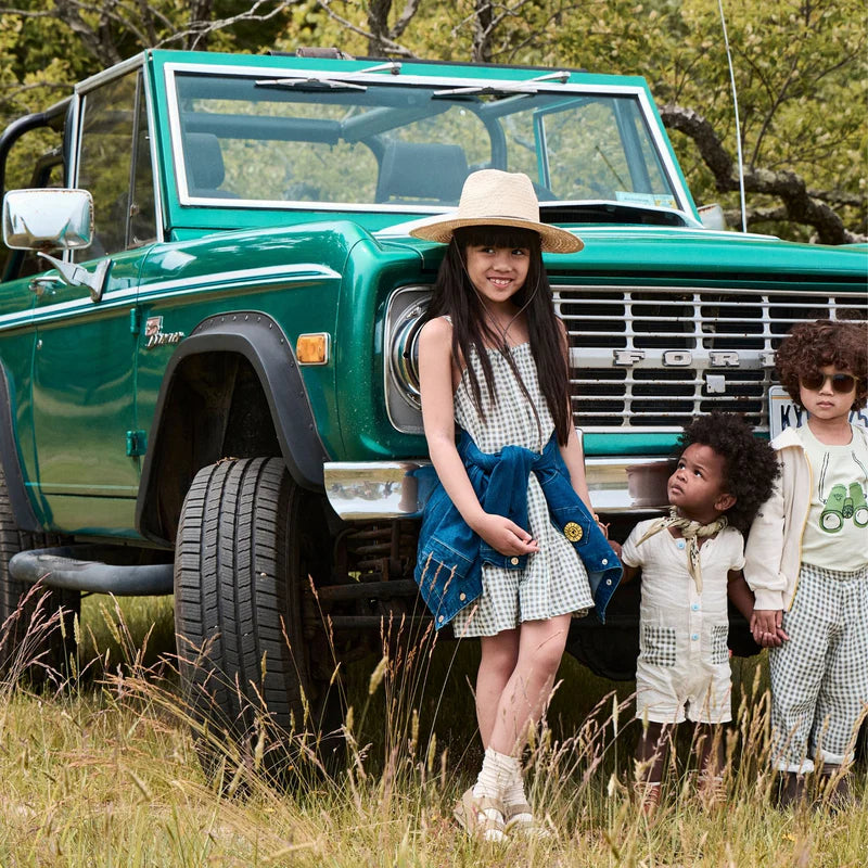 Kids Blue Gingham Linen Kid Dress - Natural/Faded Denim