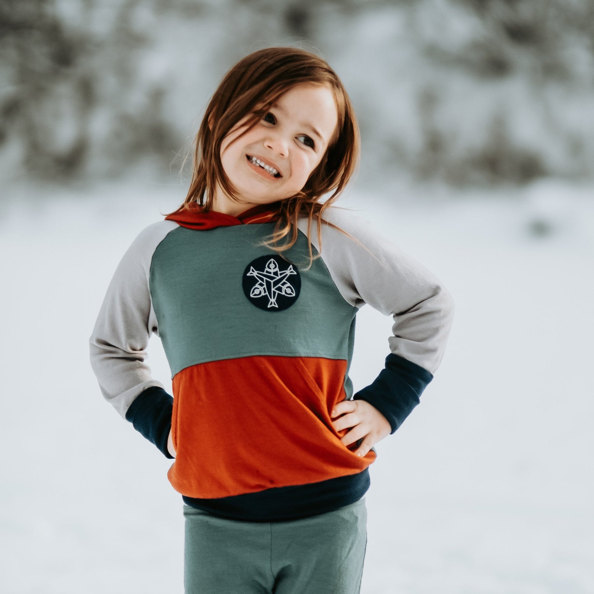 Soft, warm and colorful, our Kids Free Range Hoodie is the perfect top for any adventure. Crafted from premium 100% merino wool, it features a lined crossover hood to keep ears cozy and an oversized kangaroo pocket for treasures. Perfect as a kids thermal base layer, this hoodie is super versatile and will become your kids favorite for every adventure. Plus, the grow-with-me design ensures it will fit for years come, season after season.