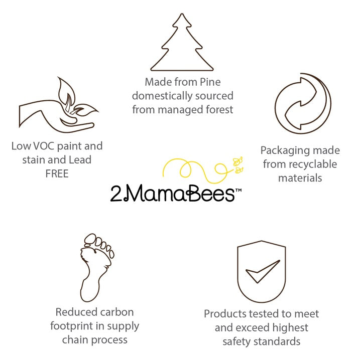 Your 2mamabees Custom Color Londyn Swing Set is designed for minimal maintenance and maximum outdoor durability. The premium white pine construction and weather-resistant low VOC custom color finishes provide natural protection against outdoor elements while maintaining your chosen beautiful colors through seasons of active play.