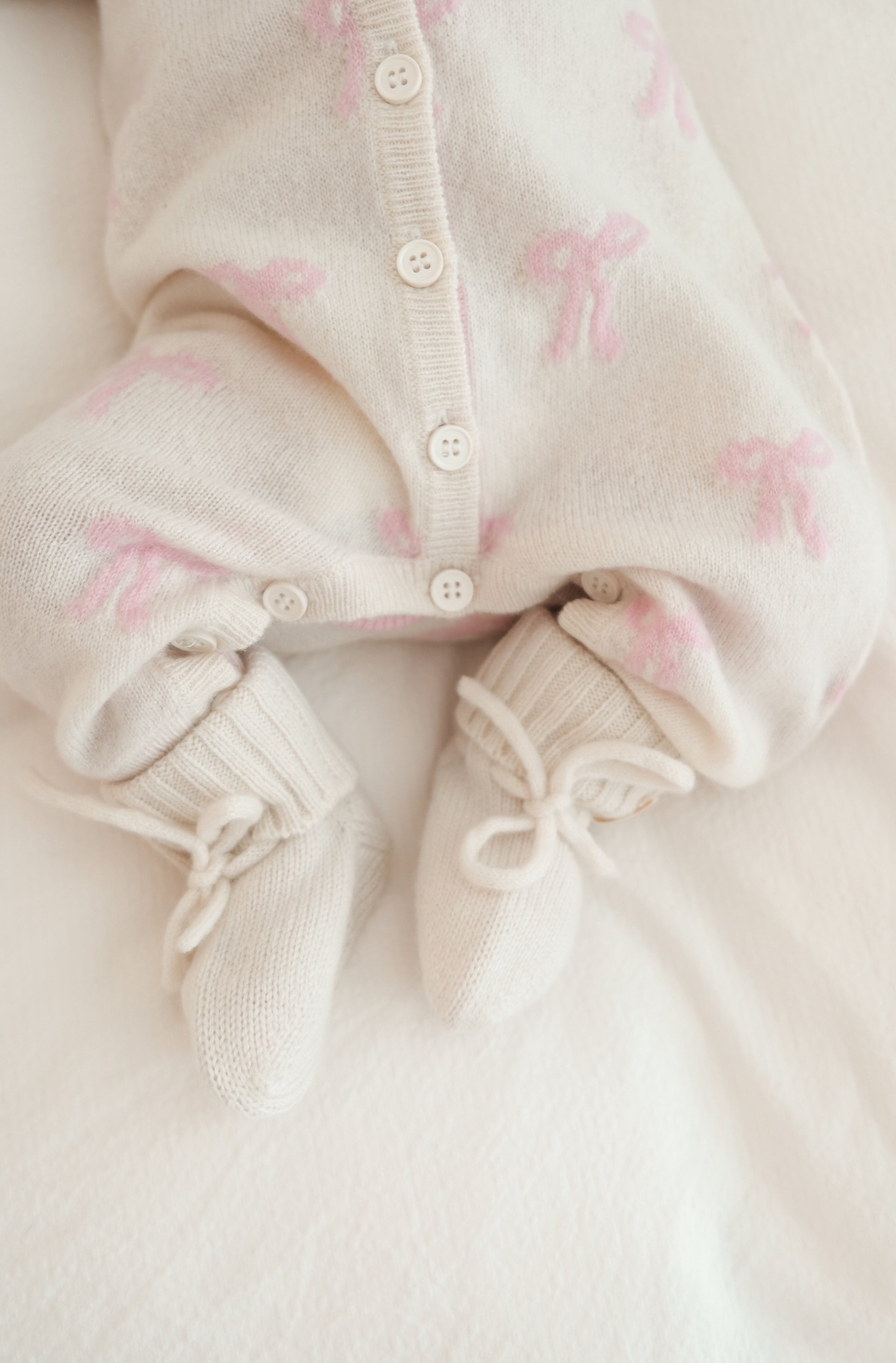 Luna + Luca Bow Cashmere Luxxe Baby Jumpsuit, Bonnet and Bootie Set