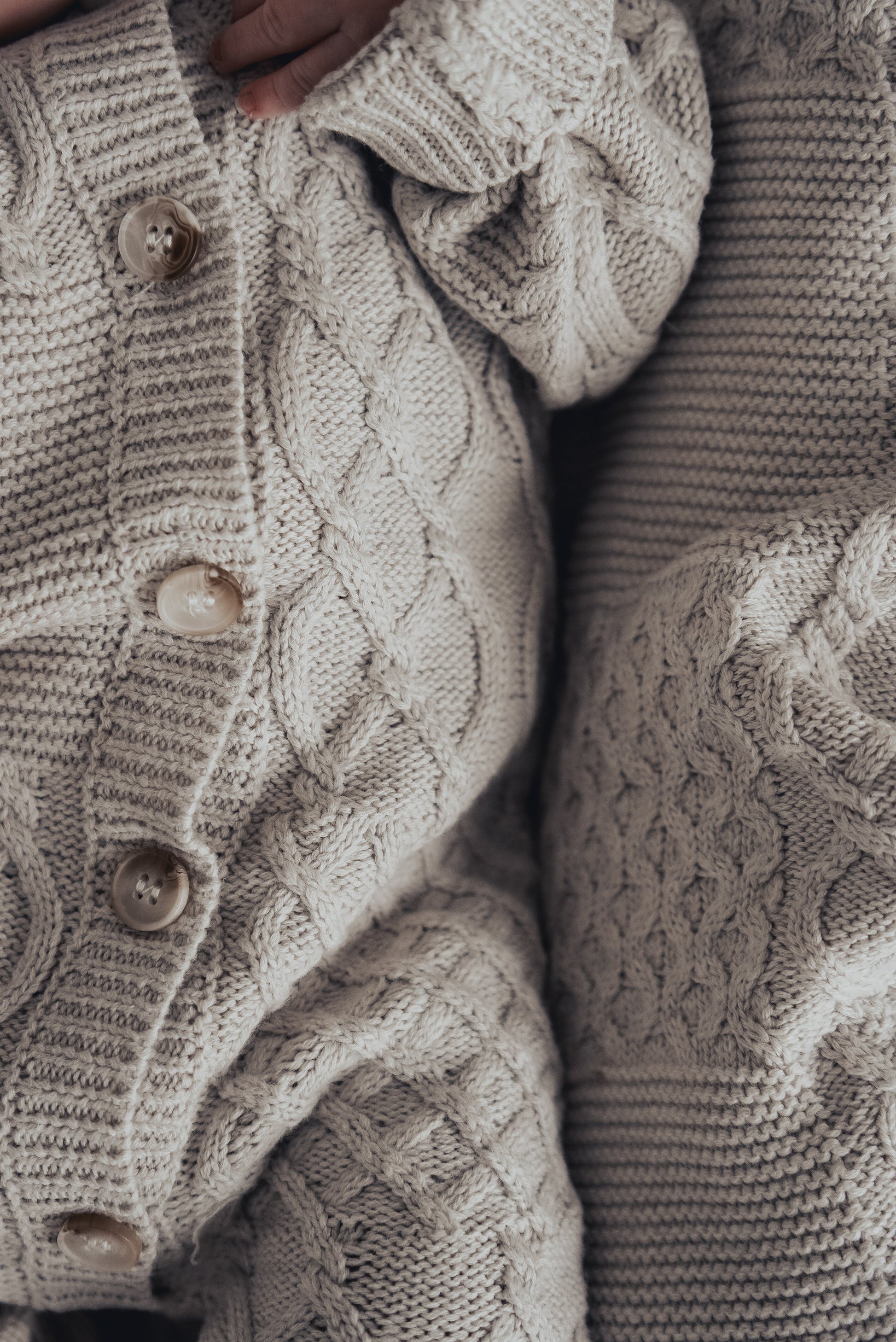 Elevate your baby's wardrobe with our Luna + Luca Mixed Knit Jumpsuit. This classic sweater jumpsuit has a mixture of knit patterns for a charming combination of textures and character. Five cream buttons fasten up the front of this jumpsuit to ensure easy dressing and undressing. Complete with ribbed cuffs and collar, it offers a snug and comfortable fit that keeps baby warm during cooler days. Our Mixed Knit Jumpsuit comes in the color Natural: a warm, fuzzy, gray.