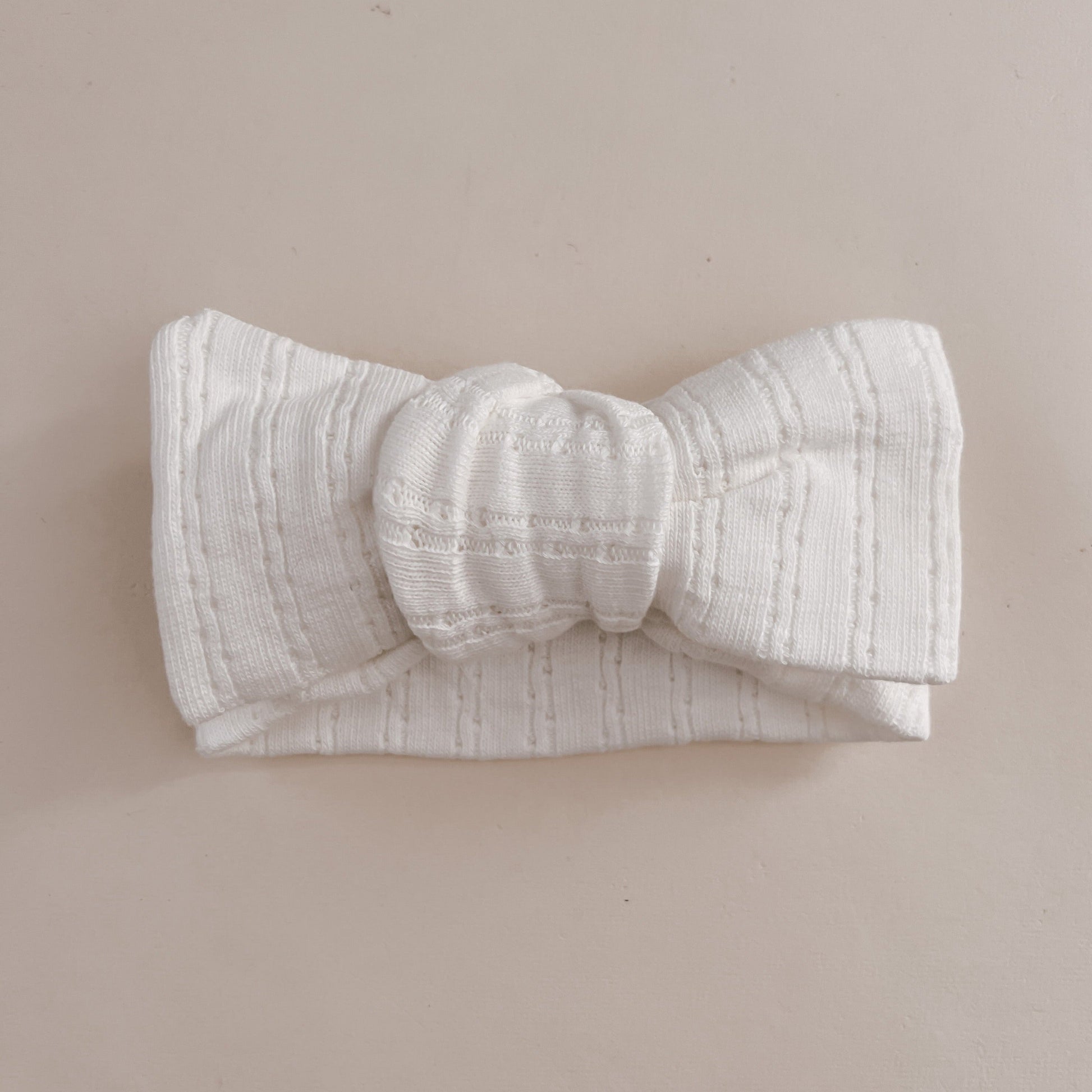 Our pointelle bow headbands are perfect to wear with any Luna + Luca outfit.