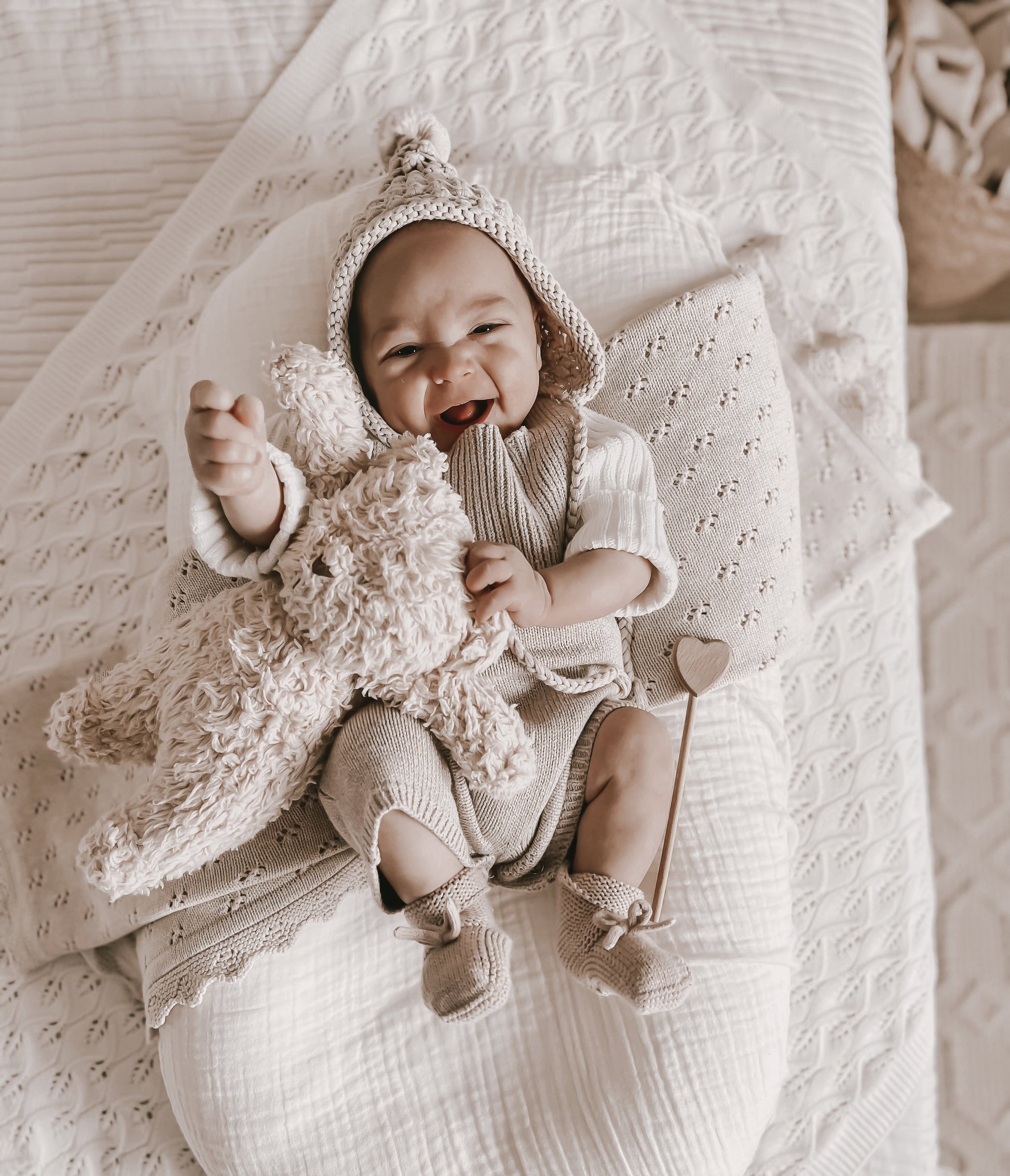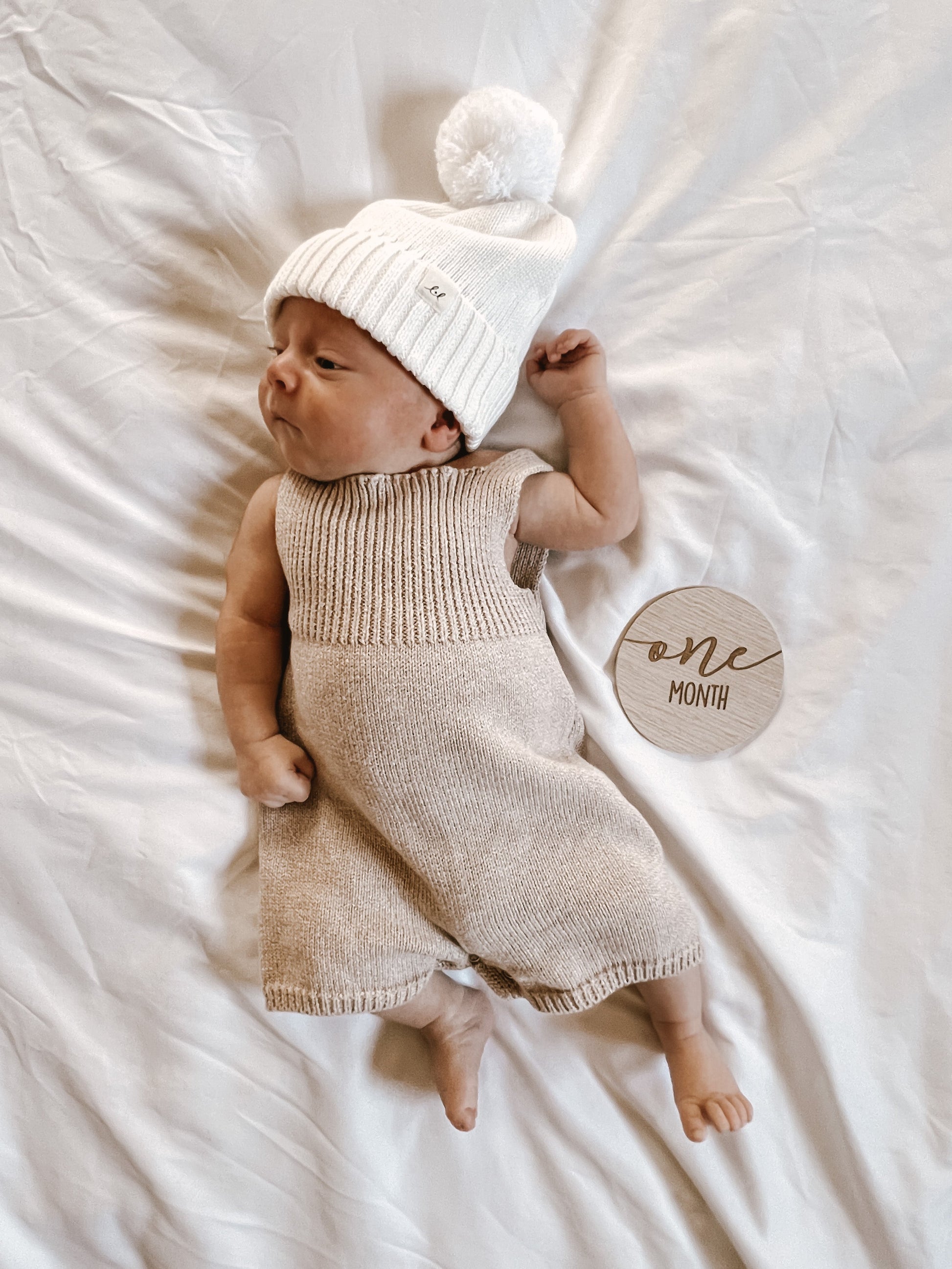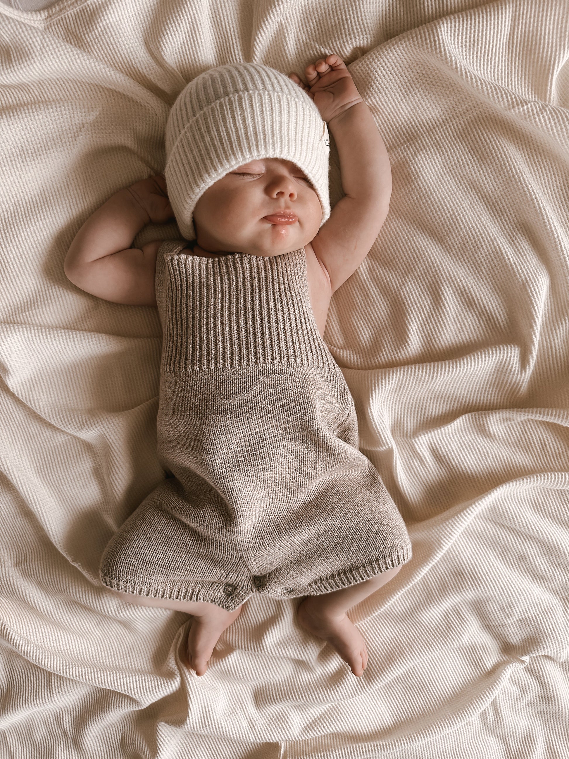 Luna + Luca Rib Detail Short Romper - Heather Beige