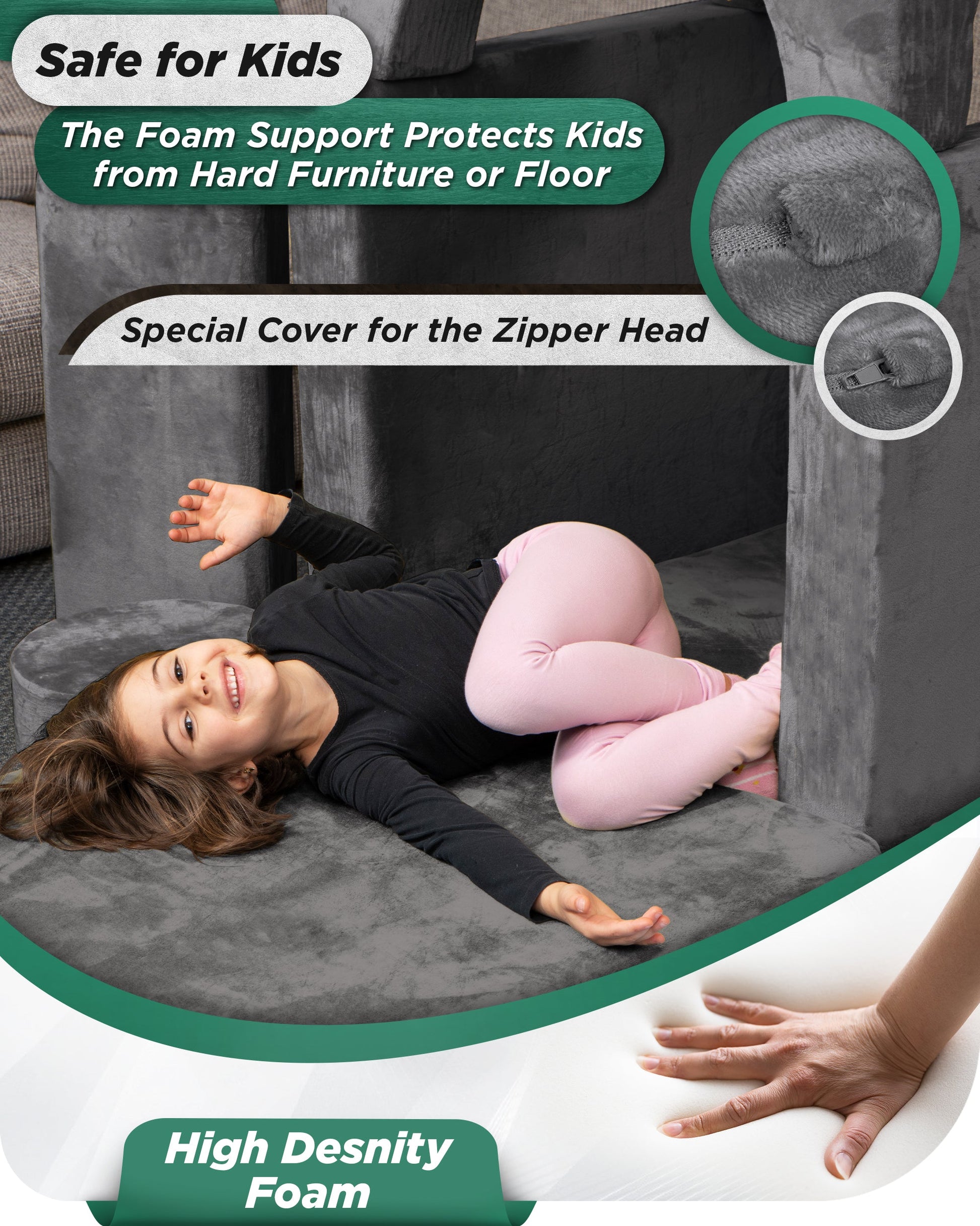 - 𝐘𝐎𝐔𝐑 𝐂𝐇𝐈𝐋𝐃𝐑𝐄𝐍 𝐃𝐄𝐒𝐄𝐑𝐕𝐄 𝐓𝐇𝐄 𝐁𝐄𝐒𝐓! Unleash the creativity of your kids with the LX15 Modular Kids Play Couch. It consists of 2 half squares with 2 semi-circles, 2 triangles, 2 circles, 2 triangular prism, 2 squares, and 2 rectangles. These 14 foam pieces can become a car, a tent, a church, a scooter, a castle, a slide, a sofa, a bed lounge, or anything that your children can imagine.
