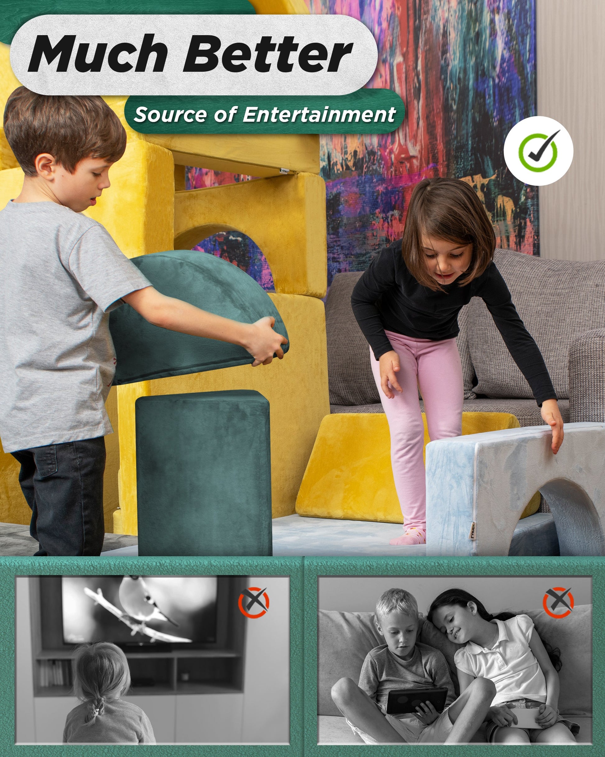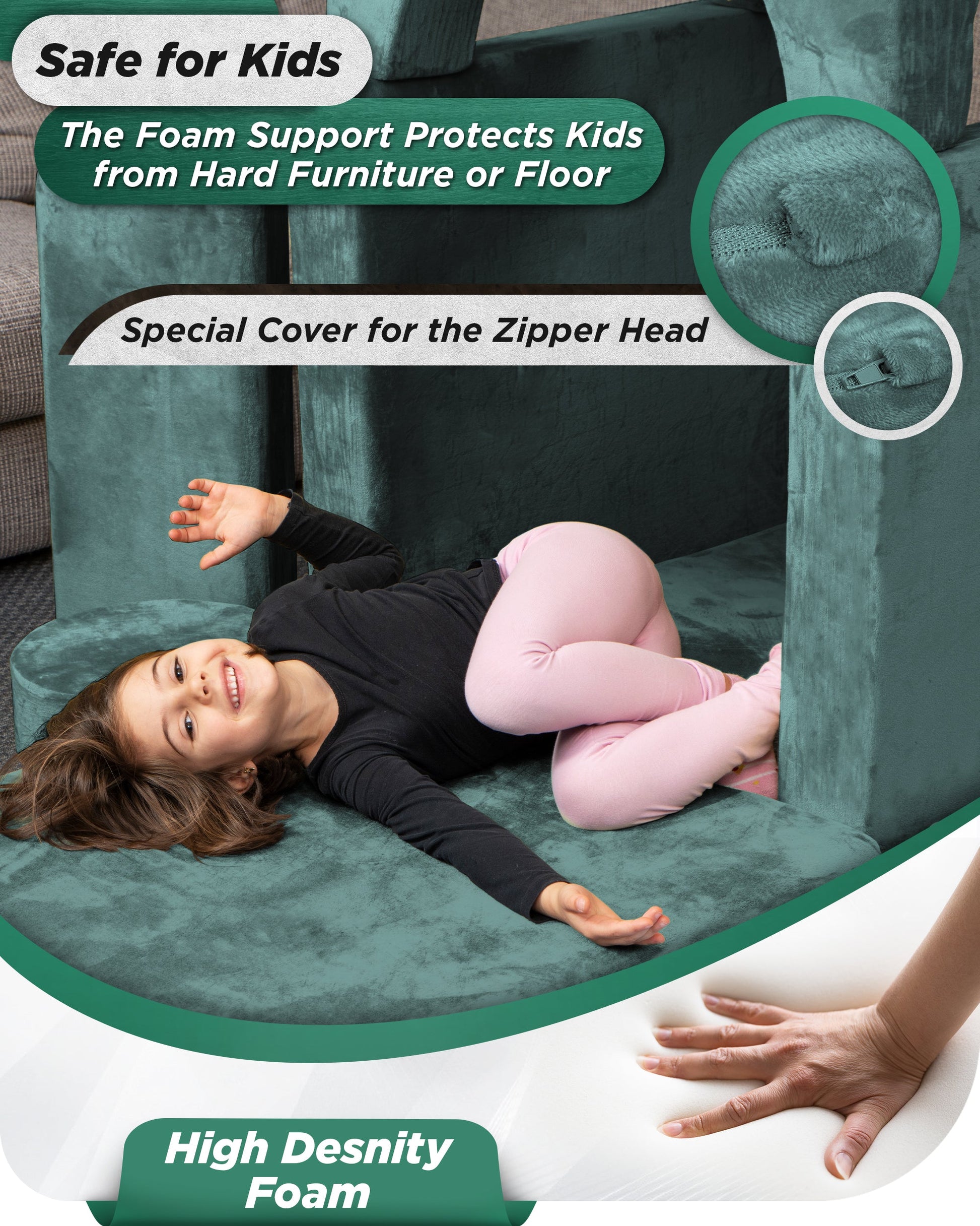 𝐓𝐇𝐄 𝐏𝐄𝐑𝐅𝐄𝐂𝐓 𝐆𝐈𝐅𝐓 𝐅𝐎𝐑 𝐊𝐈𝐃𝐒! If you are looking for a great gift for toddlers, then you would love our LX15 14pcs Modular Kids Couch. These cozy cushions are perfect for your little explorer, and big kids can enjoy them as well. Parents will approve of the removable and washable velvet cover that is soft and smooth on the skin.