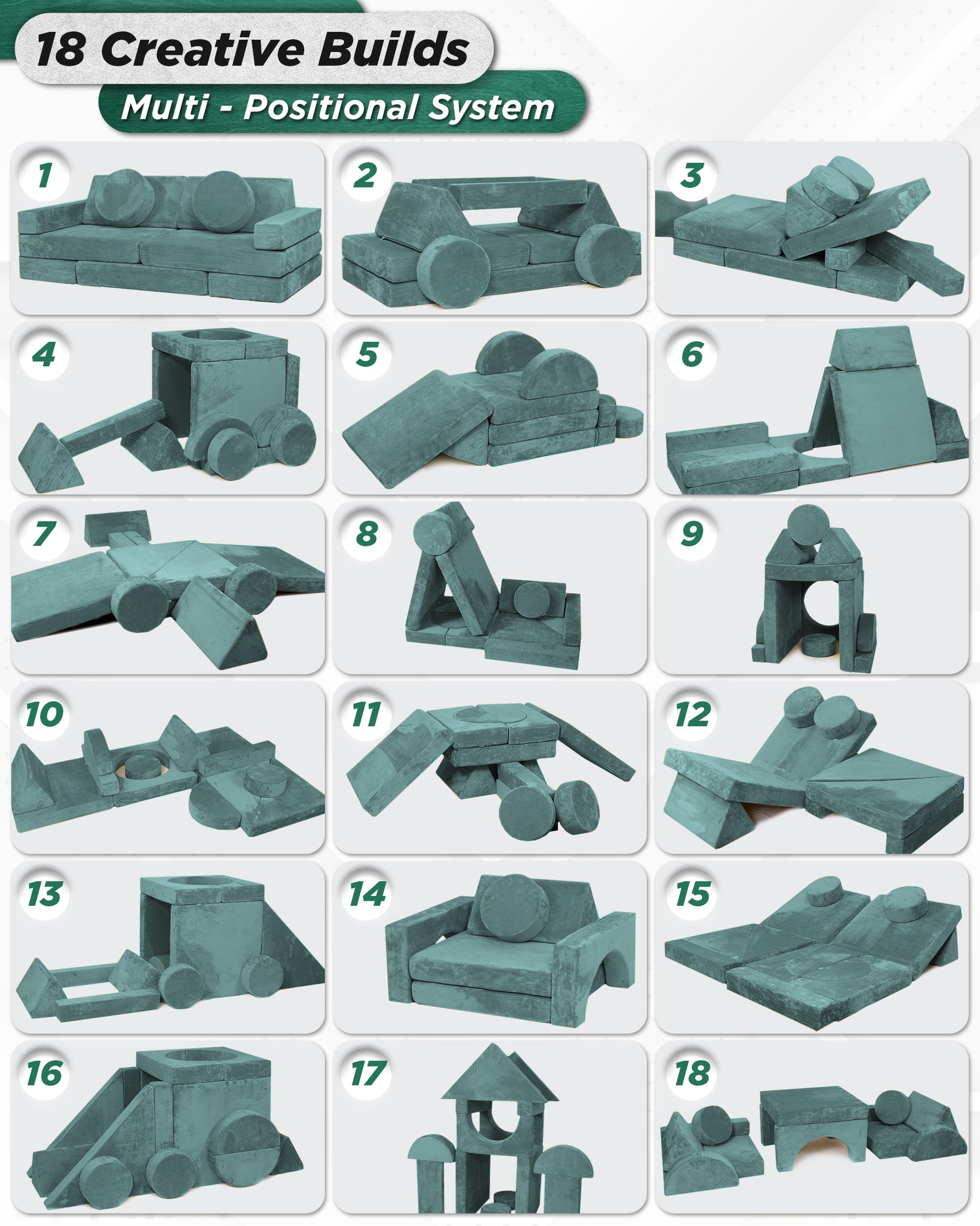- 𝐘𝐎𝐔𝐑 𝐂𝐇𝐈𝐋𝐃𝐑𝐄𝐍 𝐃𝐄𝐒𝐄𝐑𝐕𝐄 𝐓𝐇𝐄 𝐁𝐄𝐒𝐓! Unleash the creativity of your kids with the LX15 Modular Kids Play Couch. It consists of 2 half squares with 2 semi-circles, 2 triangles, 2 circles, 2 triangular prism, 2 squares, and 2 rectangles. These 14 foam pieces can become a car, a tent, a church, a scooter, a castle, a slide, a sofa, a bed lounge, or anything that your children can imagine.