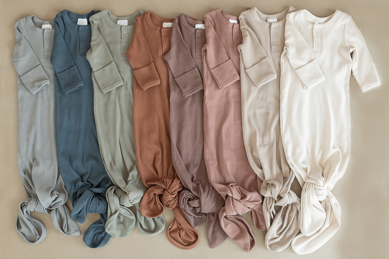 Pair the Mebie Baby Organic Knot Gown with our matching organic cotton swaddles, hats and head wraps, and other accessories to create a coordinated look for your baby. All items are crafted with the same attention to detail and commitment to quality, ensuring a seamless and stylish ensemble.