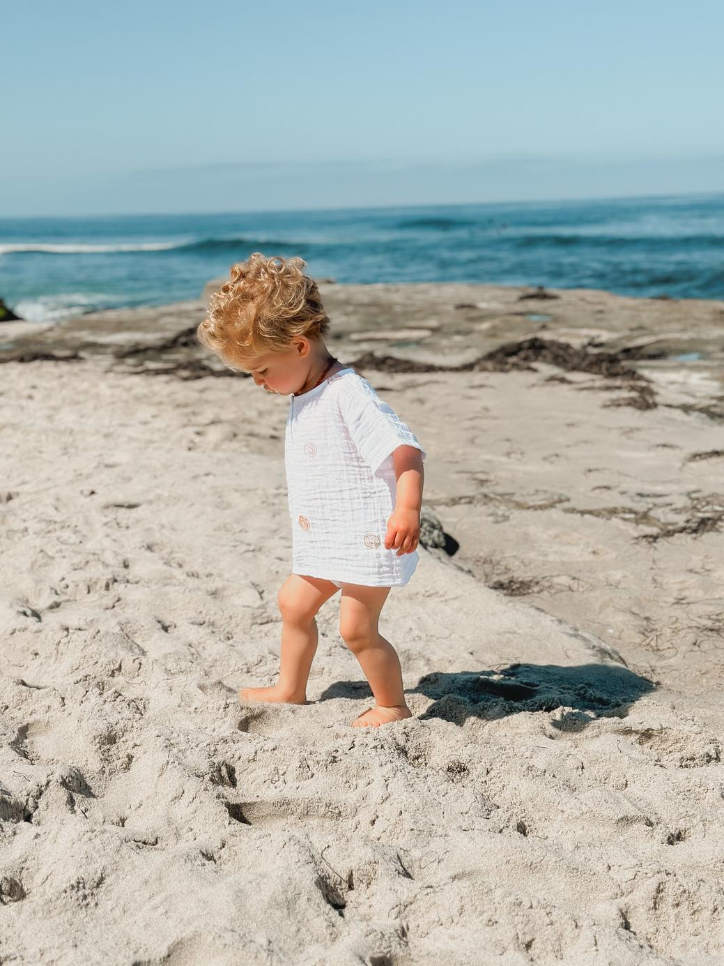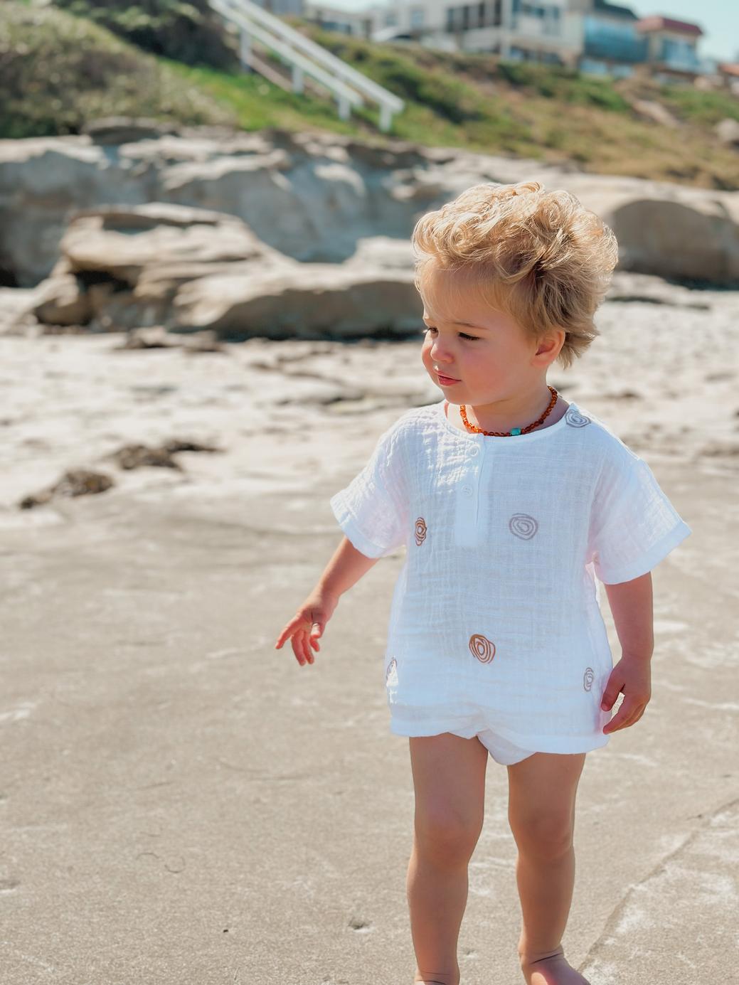 Relaxed-fit t-shirt style paired with bloomers on sizes 6-12M , 12-18M, 18-24M and paired with shorts on sizes 2T, 3T, and 4T. Crafted from 100% organic muslin cotton, it's the perfect choice for warm days.