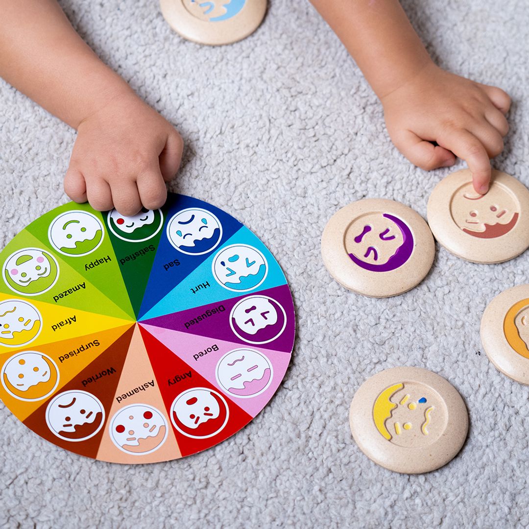 - Includes 24 wooden tiles with 12 different emotions for matching and categorizing