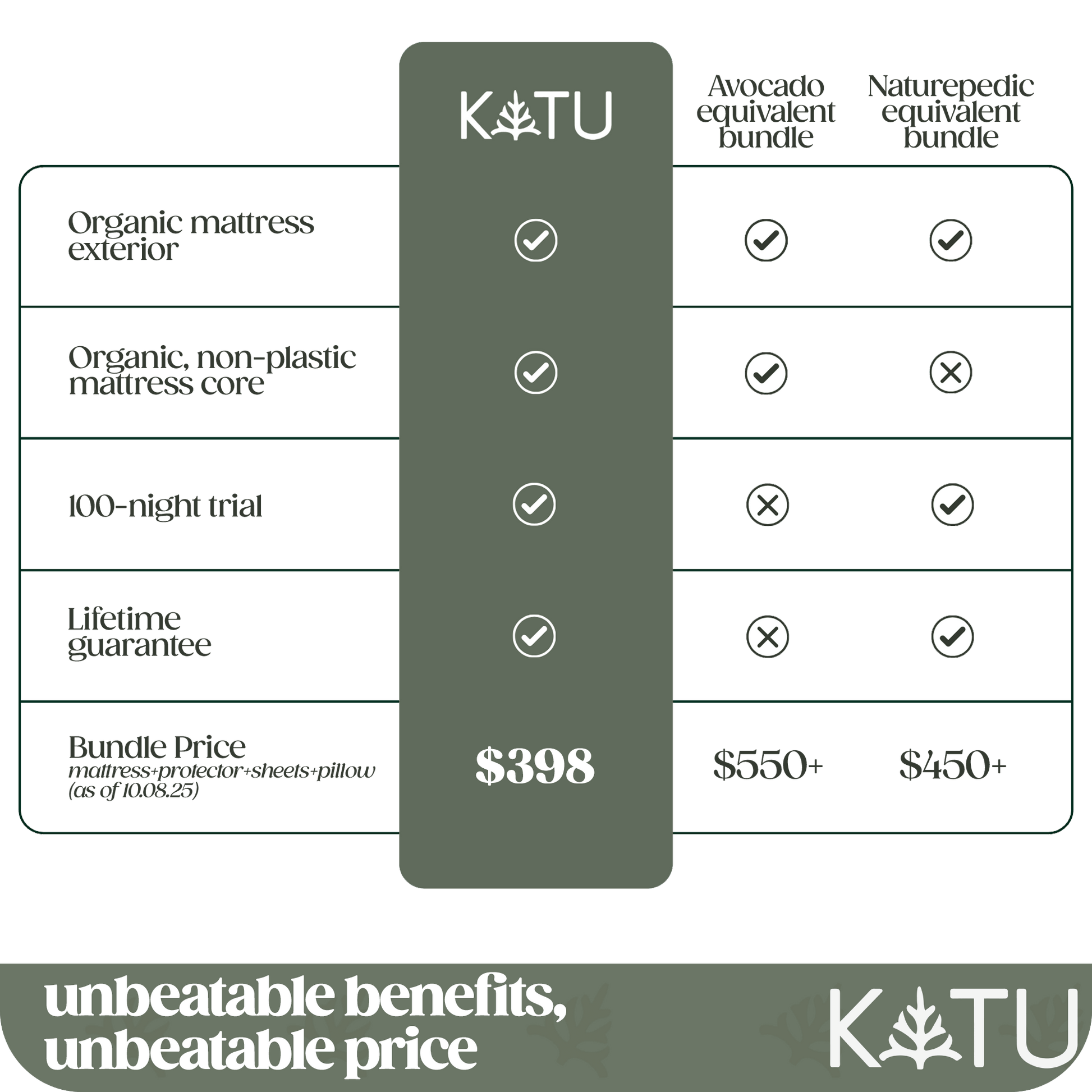 The name Kāṭu means "forest" in Sri Lanka, where they source key materials from organic-certified farms. By focusing exclusively on what parents actually care about—healthy, well-built, verifiably-tested products at affordable prices—and eliminating unnecessary features and marketing gimmicks, KATU makes truly organic, plastic-free crib mattresses accessible to all families, not just the wealthiest.