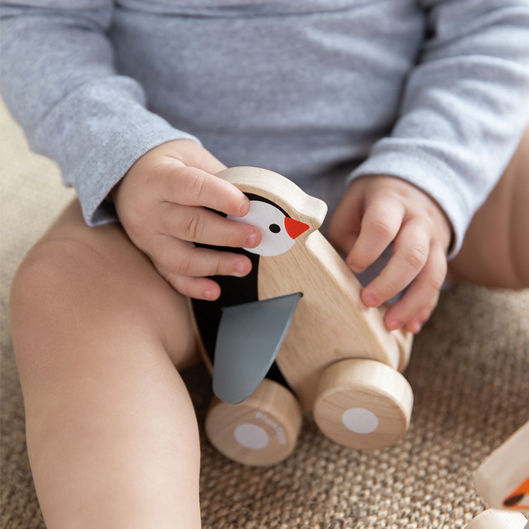 Watch as the penguin moves from left to right when being pushed. Easy grip for a young child’s hand.