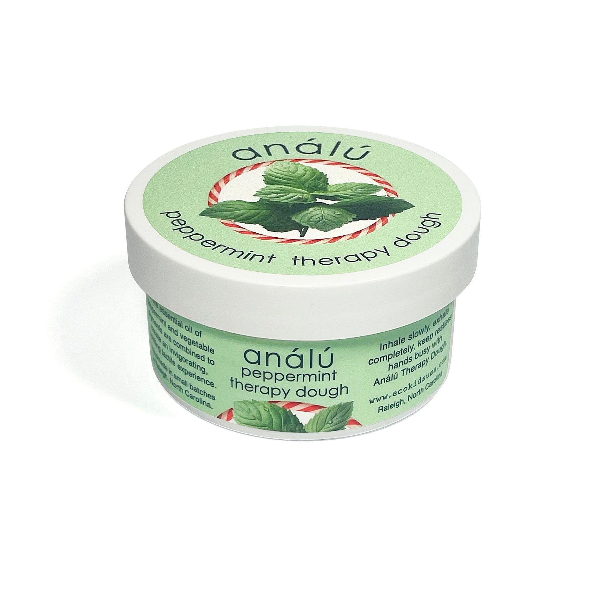 Invigorating and refreshing Analu Peppermint Therapy dough uplifts your mood, quiets the mind and busy hands, and refreshes your energy and you knead it and massage away stress.
