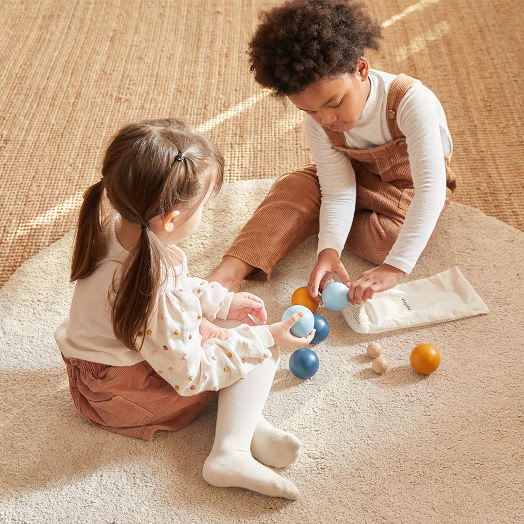 Petanque is a fun game for the whole family! Complete with 6 big wooden balls and 2 smaller ones, players split into 2-3 teams and choose a ball color to start. From a designated throwing space, the first team tosses their small ball into the field in front of them; then, they throw a bigger ball as close to the smaller one as possible. Each team takes turns doing this until all balls are played. The team who throws their bigger ball closest to the smaller one wins! Storage bag included.