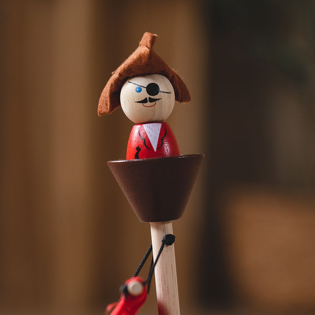 The design and function of this toy are based on a real pirate ship! The ship has a passageway in the back that can be used as a storage unit or a holding pen for the unruly. The Set includes a pirate, prisoner, crew member, treasure chest, cannon, ladder, and small boat.