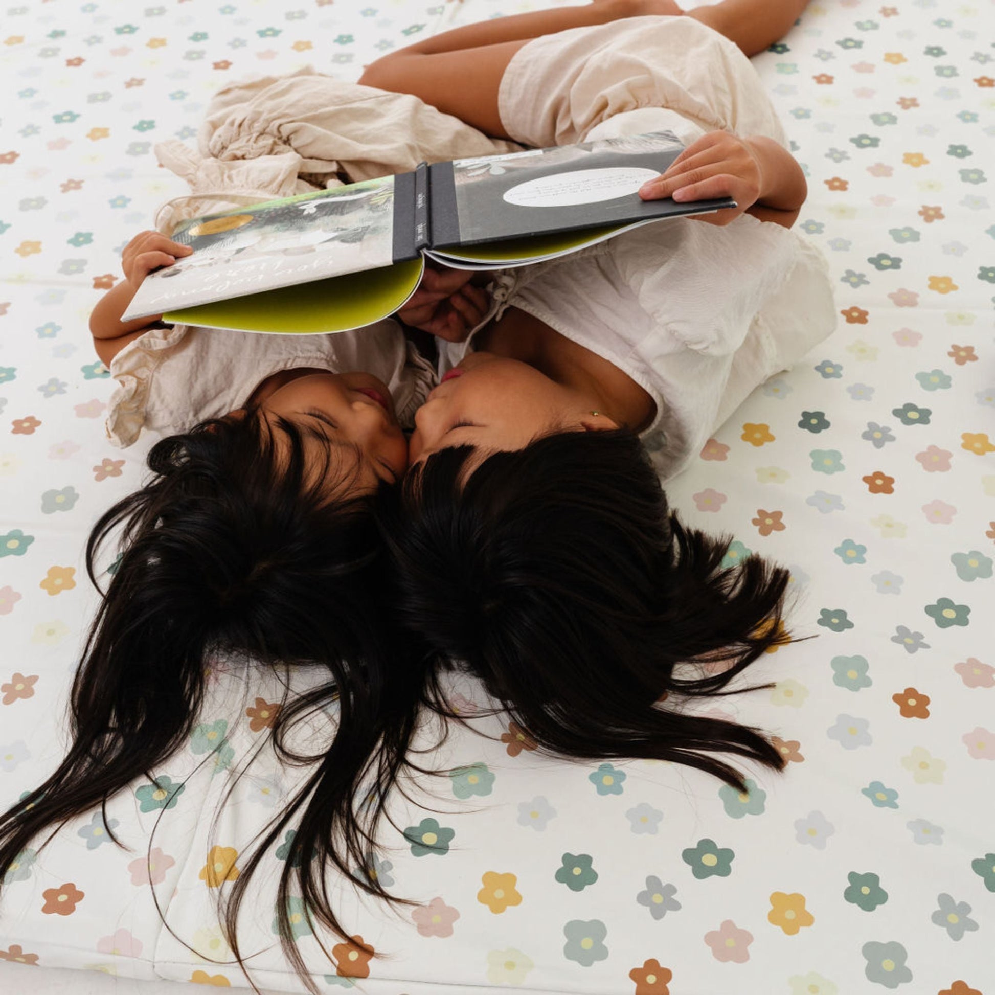 An ultra comfy, mess-proof play mat for tummy time and soft seating inside, outside, or wherever you go.