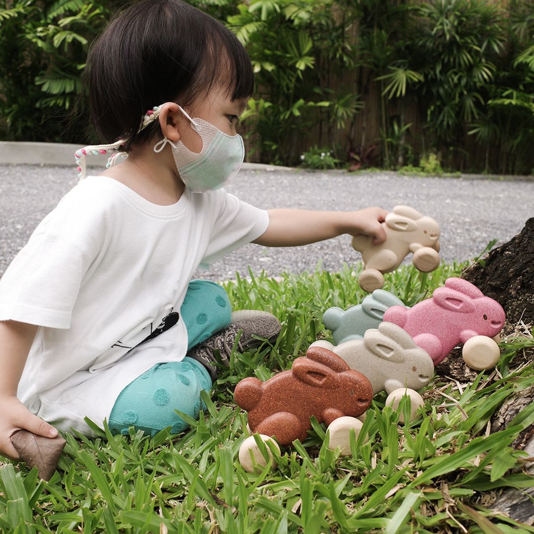 Hop alongside this happy bunny! With a soft touch and an energetic design, children can easily grab and play with these push-along bunnies and incorporate them into imaginative play scenarios. Through play, kids also develop fine motor skills and gain exposure to cause-and-effect relationship.