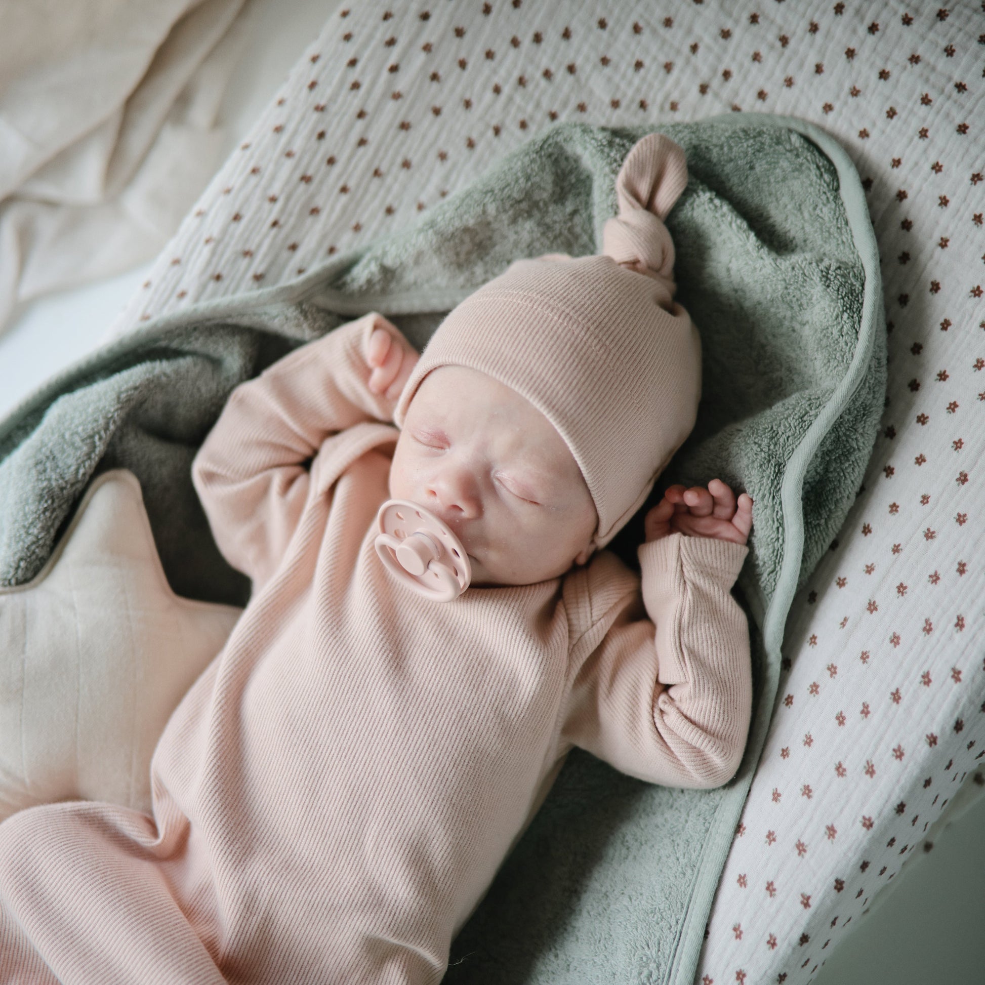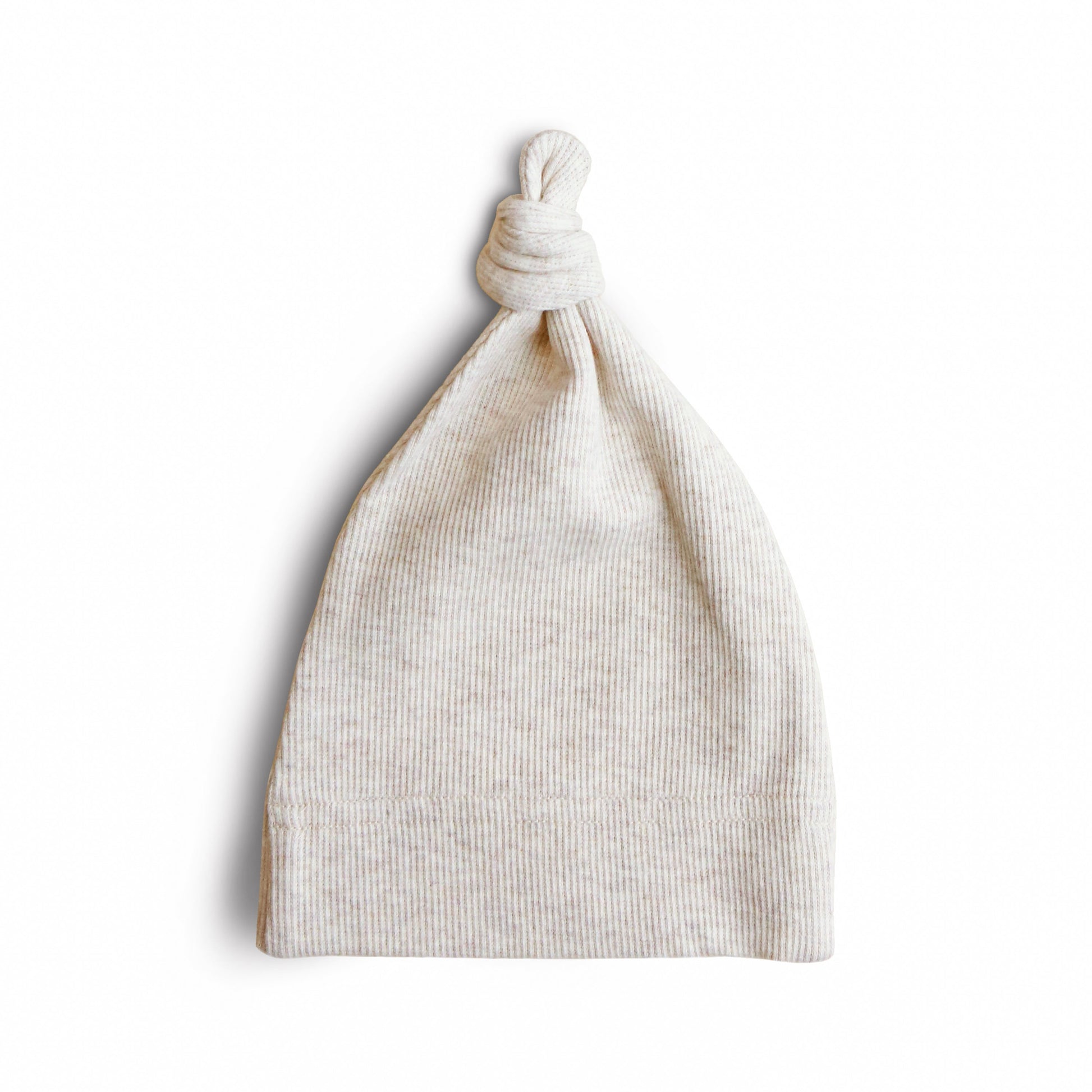 Made with organic cotton, our beanie is crafted with newborns in mind and accommodates a range in head circumferences from 0-3 months. With a light stretch and top-knot design, parents and babies will love the extra soft, rib knit fabric.