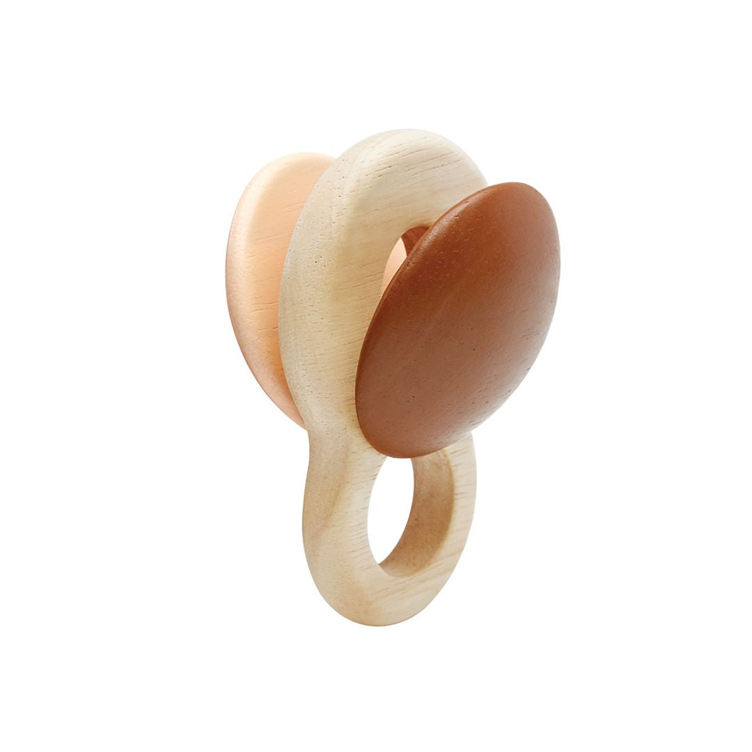 The PlanToys Shake N Clap Rattle will keep your little one engaged and learning as they shake the rattle to play music. The design is simple but it is packed with developmental play. The rattle will engage their vision, hearing and tactile sense through play. Great for parent guided play in early months to help develop eye tracking as they will follow the rustic colors and sounds as it is gently shaken. The smooth surfaces, contours and grasping ring are a delight for baby to hold. Connect it to your carrier, stroller or shirt with your favorite clip for on the go play. Made with organic pigments and water based dyes for your peace of mind.