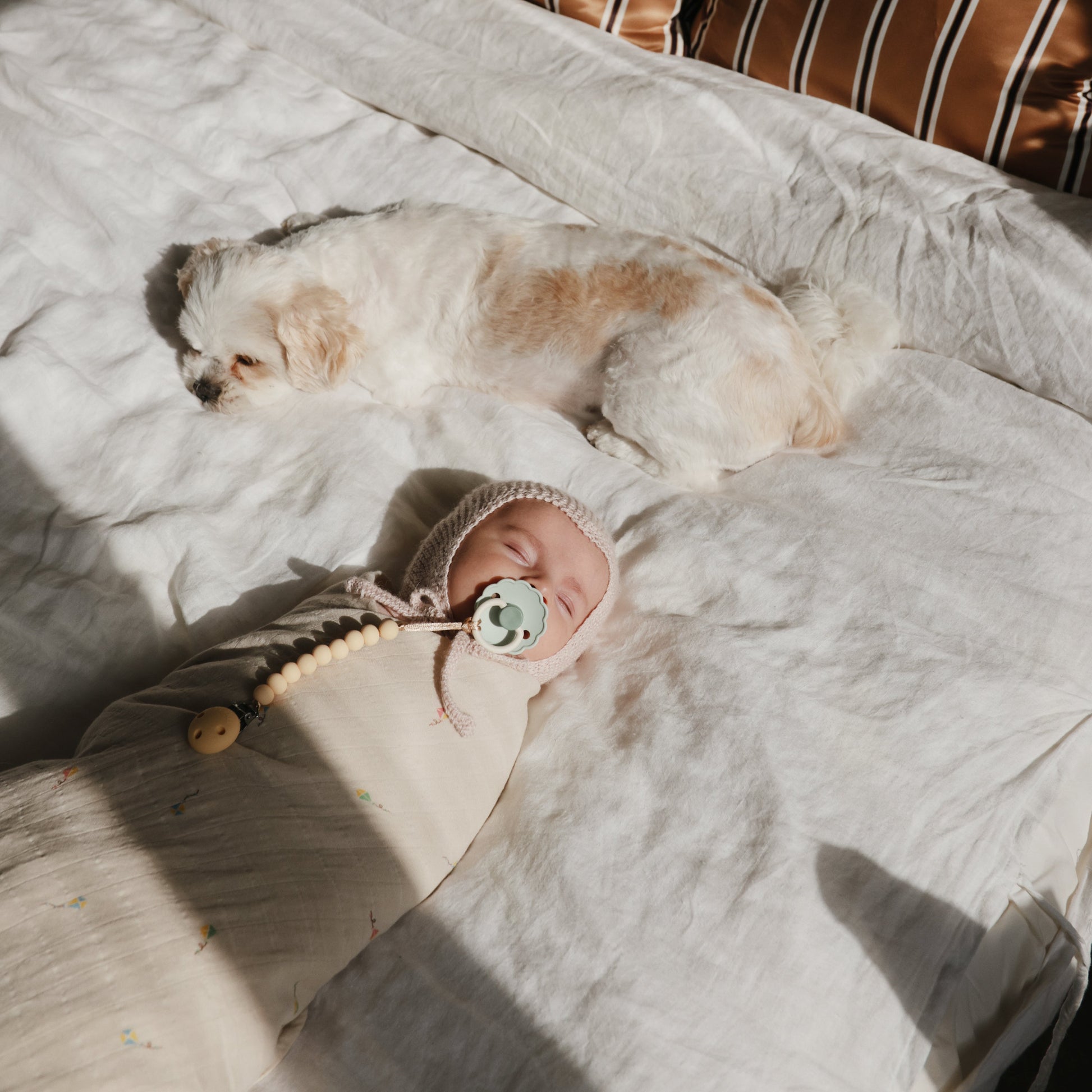 The Mushie silicone pacifier clip offers durability, function and simplicity to families on-the-go. Made from 100% food-grade silicone, our clip features a silicone clasp that brings a modern take to a traditional favorite. With a single color stack of silicone beads, the Hera clip offers families a beautiful accessory in a minimalist design. The clip is easy to clean and helps keep soothing items in reach for little ones.