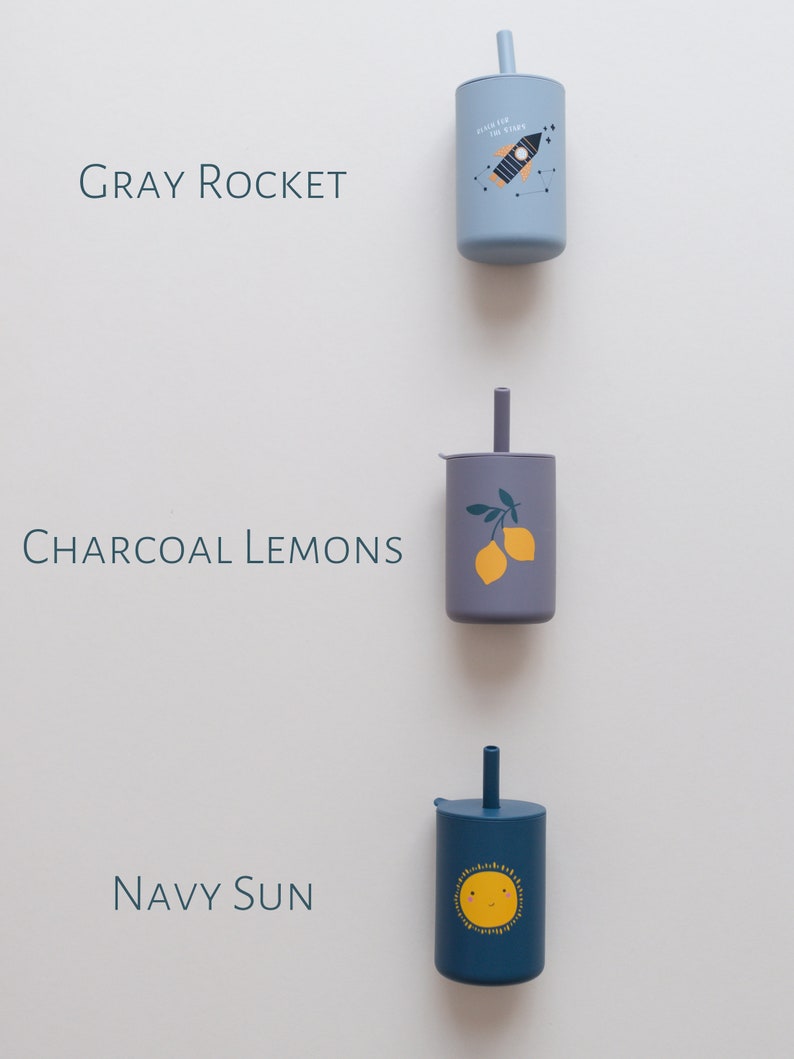 Silicone cup and straw lid for babies & toddlers. Straw is removable for easy washing.