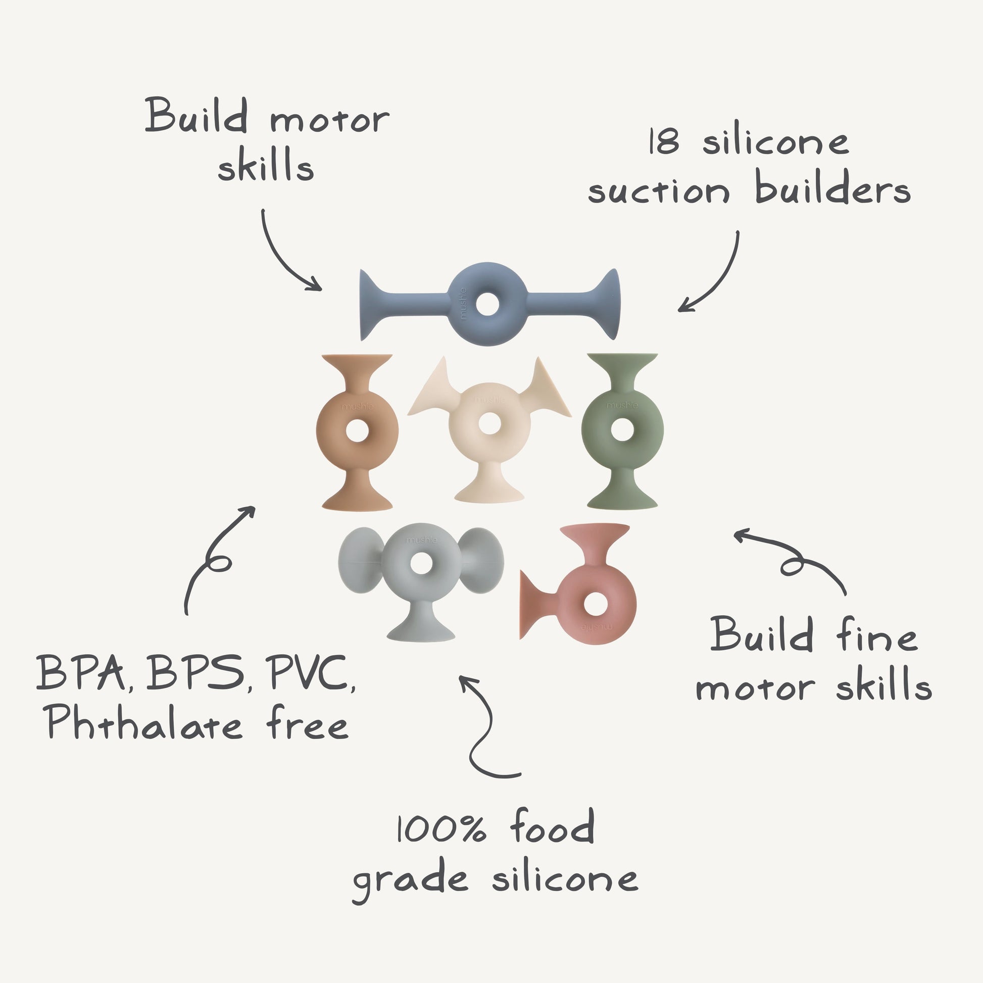 What's Included: 1x set of 18 silicone suction builder toys