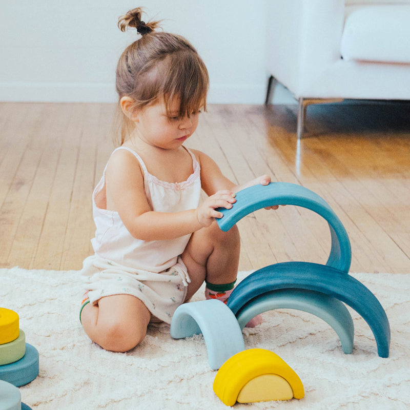 It's super simple...with our Simply Semicircles! Toddlers will love to stack, nest or make different shapes with our beautiful, stained wood semicircles. The warm colors will delight your child. Our 6 arched pieces will become a keepsake for sure. Check out the entire Simply collection. Simply the best!