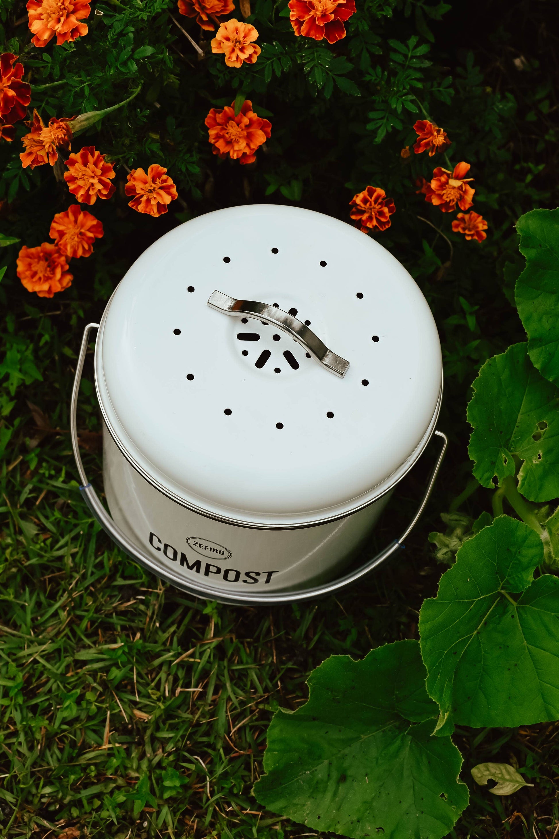 Stainless Steel Countertop Compost Bin – White (0.8 Gallons)