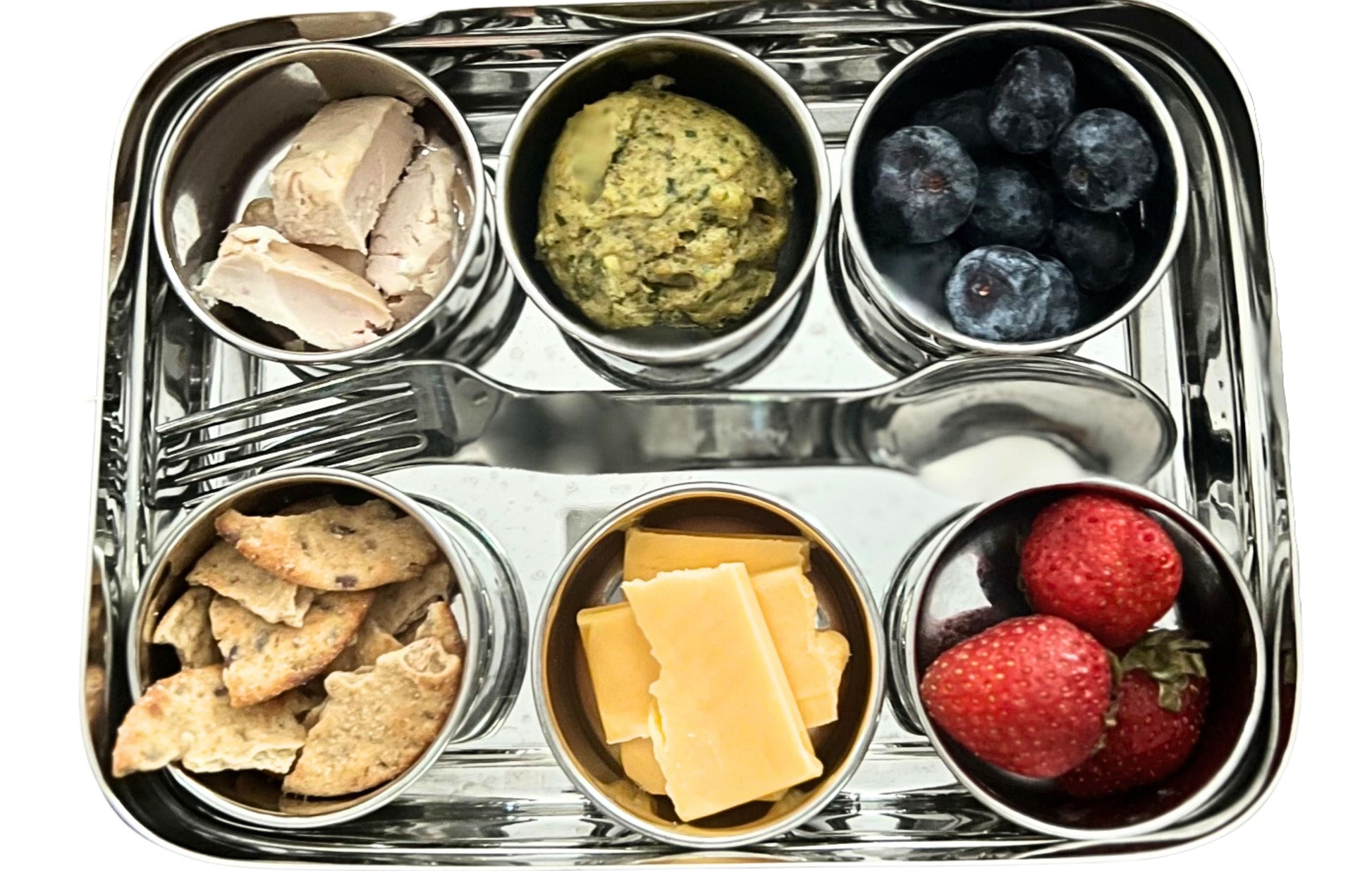 Perfect Snack Box Companion: Designed to fit neatly in Busy Benny snack boxes and most lunch containers, providing a complete mealtime solution that keeps everything organized and accessible for independent eating.